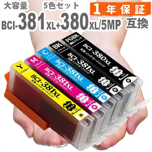 純正同様にお使いいただける キヤノン BCI-381XL+380XL/5MP 5色マルチパック の互換インクカートリッジです。