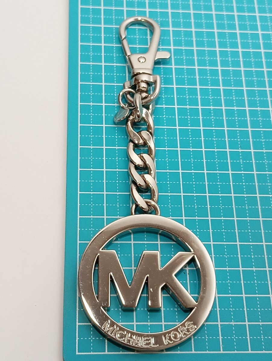 1円【美品】MICHAEL KORS マイケルコース カラビナ キーホルダー バッグチャーム MK ロゴ シルバーカラー
