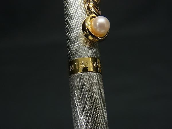 ■美品■ MIKIMOTO ミキモト 本真珠 アコヤ真珠 パール 約4mm キャップ式 ボールペン 筆記用具 文房具 シルバー系×ゴールド系 DH0028