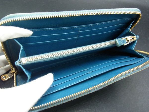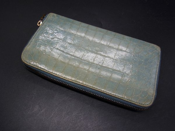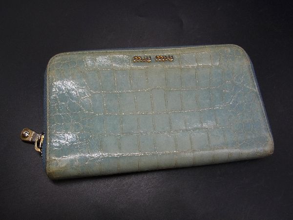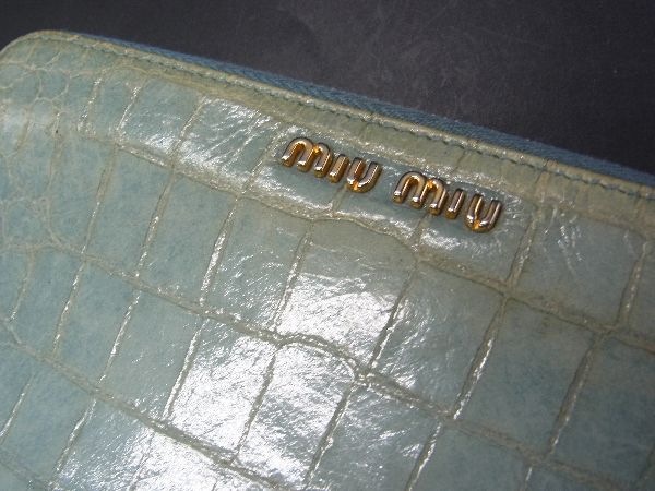 miumiu ミュウミュウ クロコダイル型押しレザー ラウンドファスナー 長財布 ウォレット 札入れ 小銭入れ ライトブルー系 DG7563