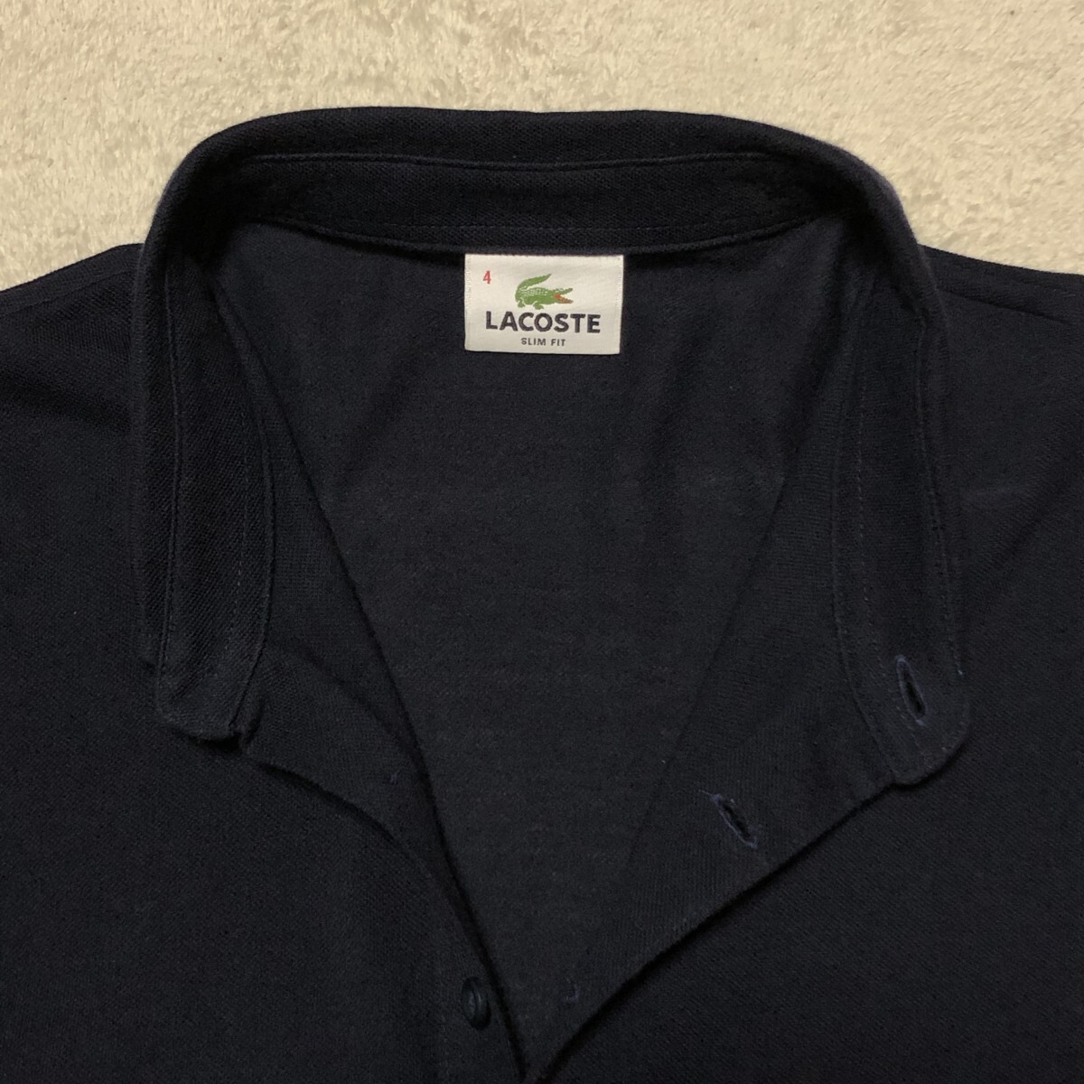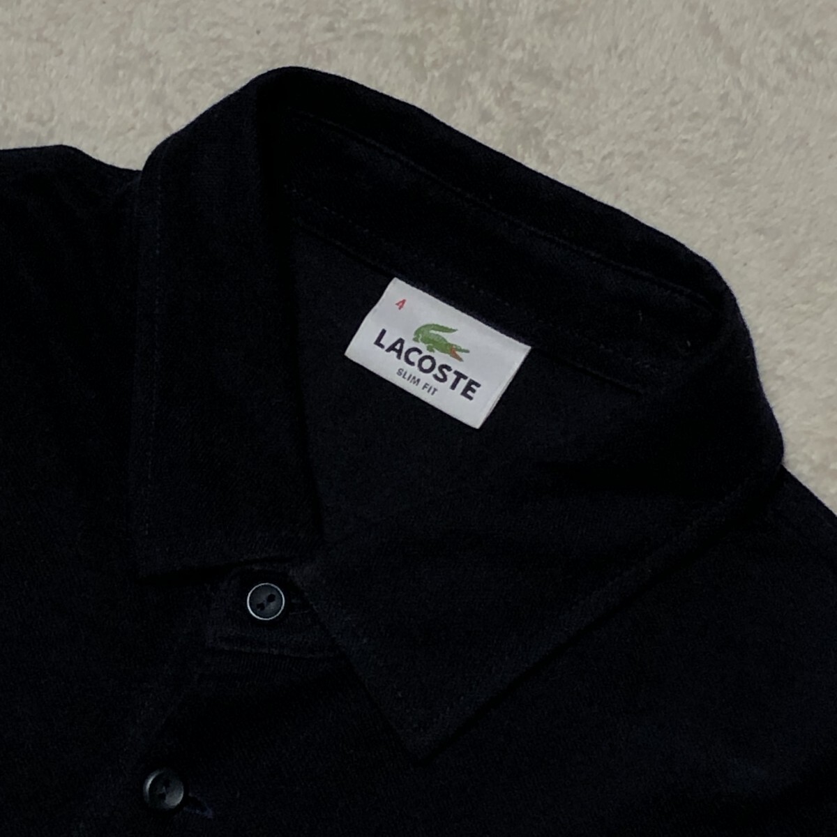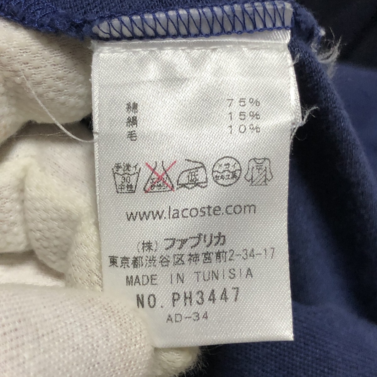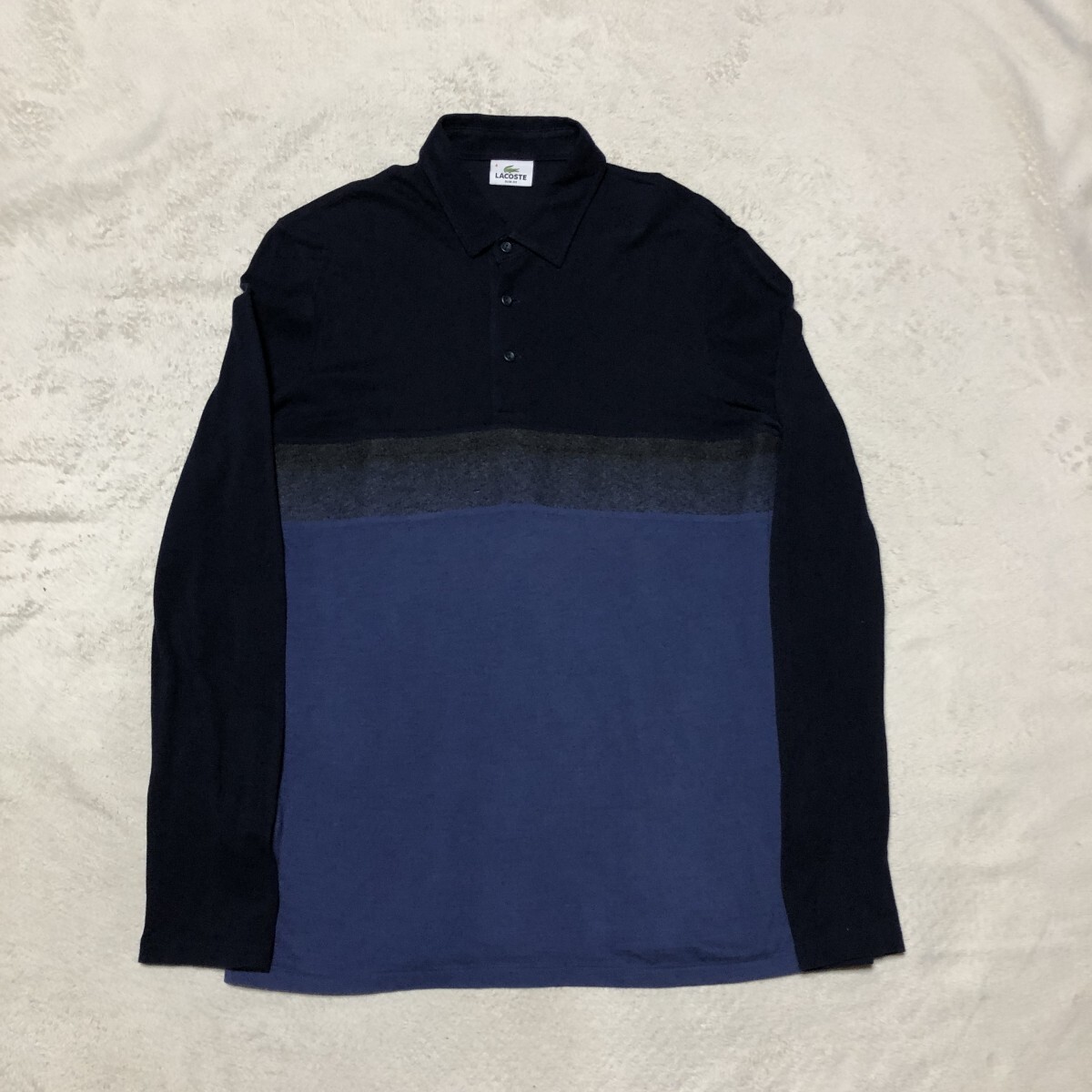 ラコステ LACOSTE 長袖ポロシャツ コットンシルクウール 異素材切り替え ワニロゴ革パッチ 4サイズ Mサイズ