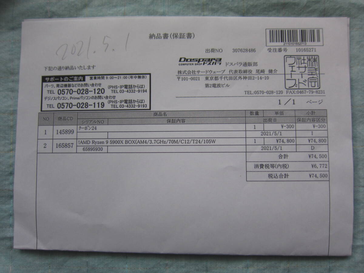 BOXは処分して、ありませんが、BOXとしての購入記録を参照して下さい。