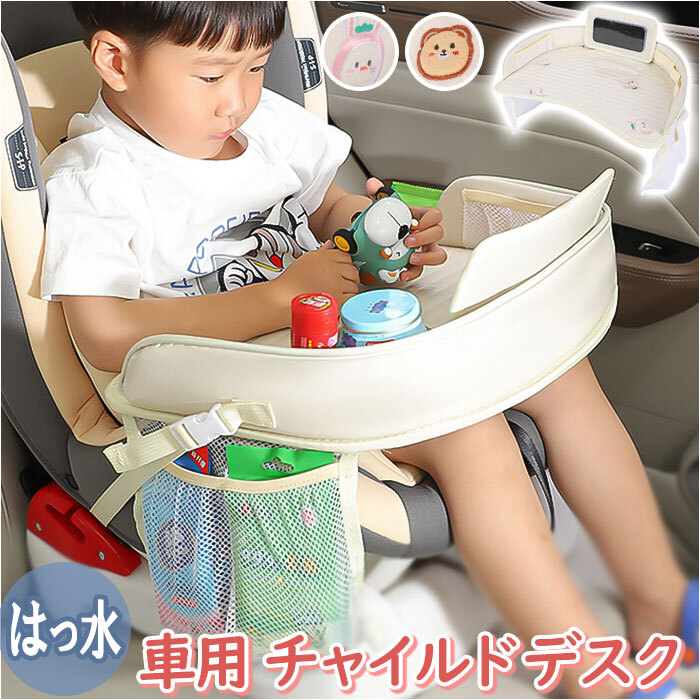 商品説明 | ・・長いドライブもへっちゃら☆お出かけをもっと楽しくしてくれる「チャイルドデスク 車用」が登場! ・【簡単取り付け】 ・付属のストラップをシートに通し、カチっと留めるだでOKの簡単取り付け!取り外しが簡単にできるので、お出かけもスムーズ☆ ・【ドライブ時間が充実】 ・デスクの上で、いつものおもちゃ遊びをしたり、おやつを食べたり…♪ドライブ時間をもっと楽しく、もっと充実させてくれる嬉しいアイテム! ・【多機能設計】 ・デスクの裏面にはクッションをIN、飲み物ホルダーや、おもちゃ収納など、使いやすさがたくさん詰まった、多機能設計。 ・【スマホケースつき】 ・スマホケースは面ファスナーで、デスクにペタっと貼付けOK。透明窓で操作が可能なので、お子さまもママパパもラクチン! ・【撥水加工◎】 ・デスク表面には、撥水加工を施し、飲み物などをこぼしてしまっても安心の仕様。汚れに強いのも嬉しいポイント。 ・※撥水加工はPVC部分のみ、布部分は撥水効果はありません。 ・【可愛いデザイン】 ・お子様も喜ぶ可愛いデザイン!男の子も女の子もお気に入りがきっと見つかる♪ |