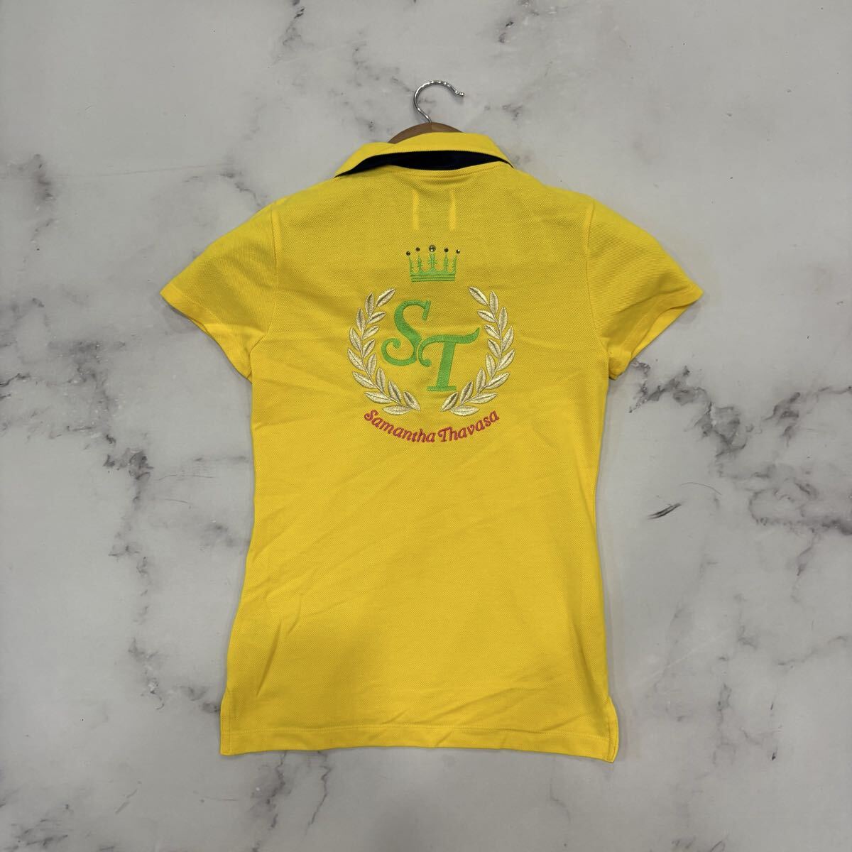 C ■ 日本製 '高級感溢れる' Samantha Thavasa サマンサタバサ No.7 半袖 刺繍デザイン 鹿の子 ハーフボタン ポロシャツ 36 トップス 古着
