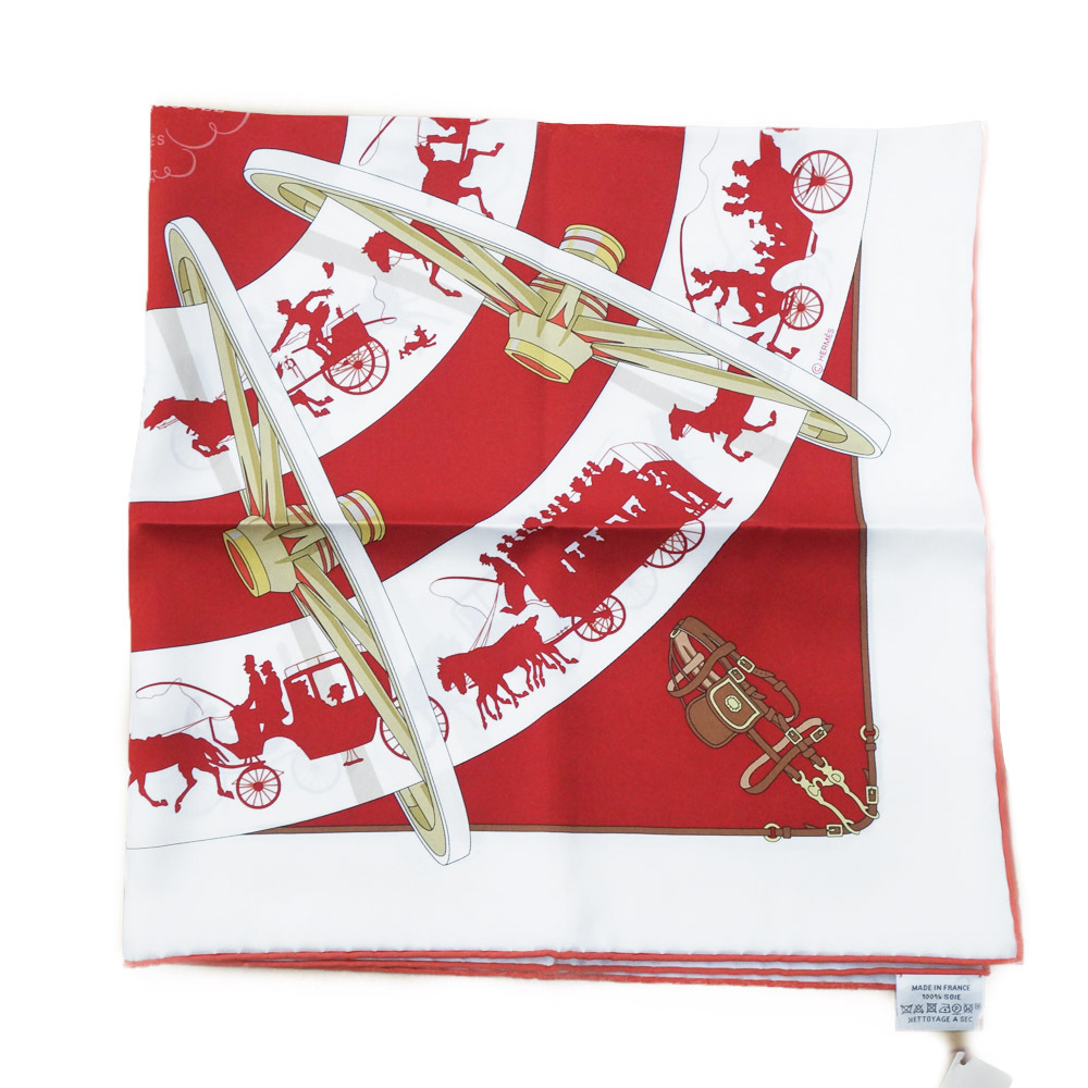 【栄】エルメス H981167S 12 カレ70 車輪でめぐるパリ 大判 シルク100% 白 レッド 小物 その他 箱