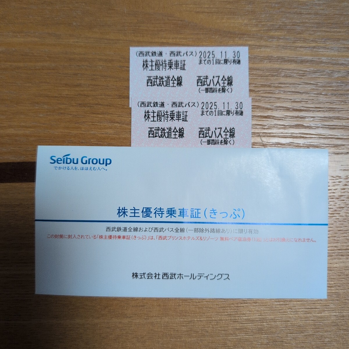 西武鐵道の株主優待乗車証2枚です。