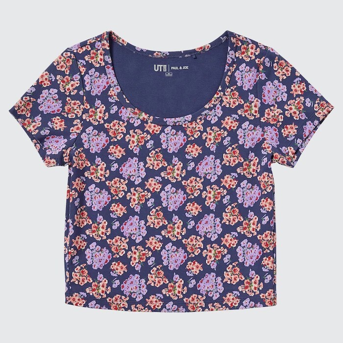 新品 ユニクロ ポール & ジョークロップド UT グラフィックTシャツ(半袖・タイトフィット) NAVY  Sサイズ