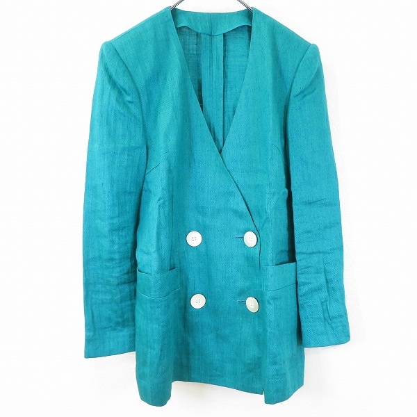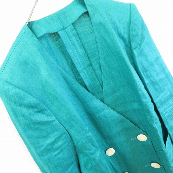 商品名 | #a レリアン Leilian ジャケット ノーカラー ダブル 9 緑系 無地 麻 長袖 日本製 960200 k01 |