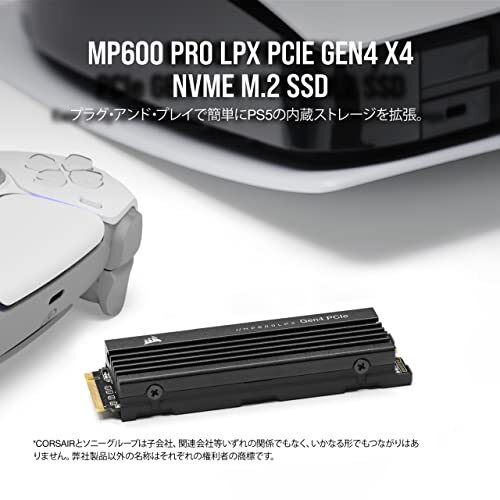 CORSAIR MP600 PRO LPX PCIe Gen4 x4 NVMe 1.4 M.2 SSDはPlayStation 5のストレージ増設に対応した高速SSD。PCI Express 4.0 x4とNVMeに対応し、最大7 100MB/sの高速なデータ転送が可能です。ロープロファイルのヒートシンクを装着済みなので、すぐに使い始められます。