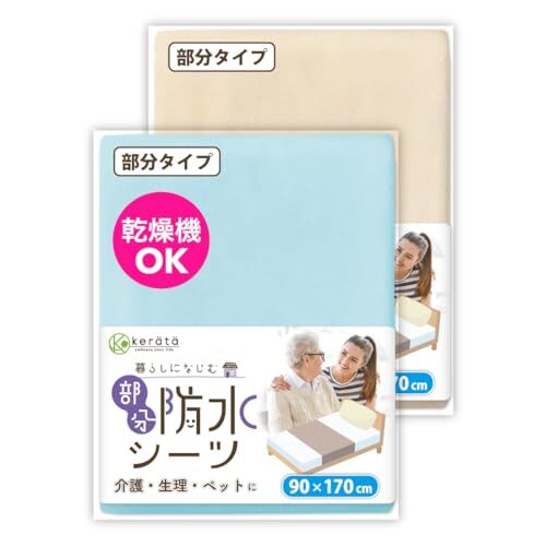 (ケラッタ) 防水シーツ 介護 しっかり巻き込み 部分用 90×170cm 天然由来抗菌 防ダニ全面防水 綿100% 洗替えに便利 (g ブルー