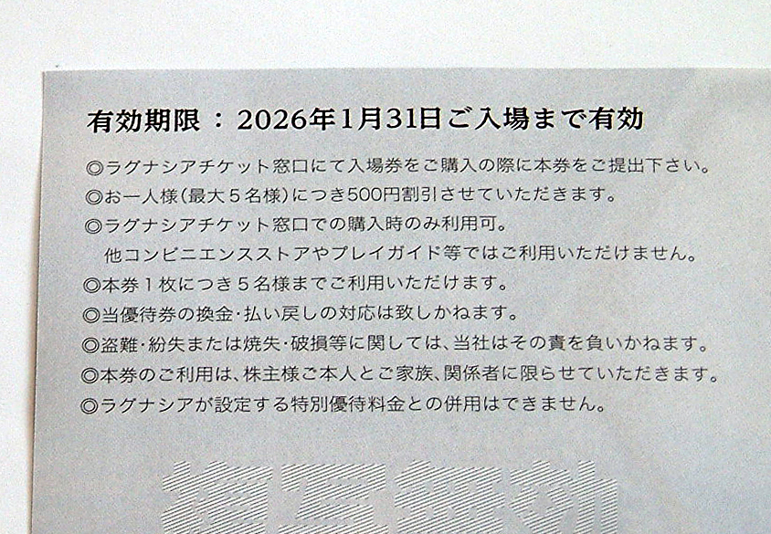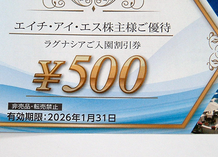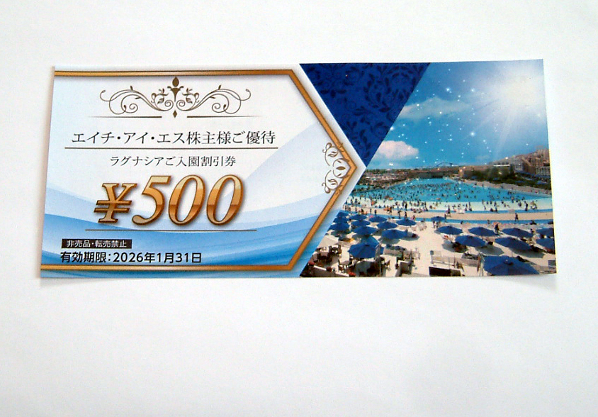 HIS エイチ・アイ・エス 株主優待 ラグナシア入園割引券 |