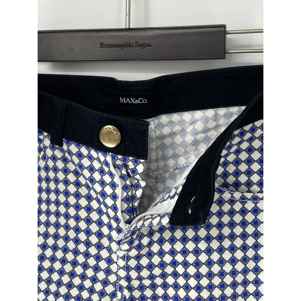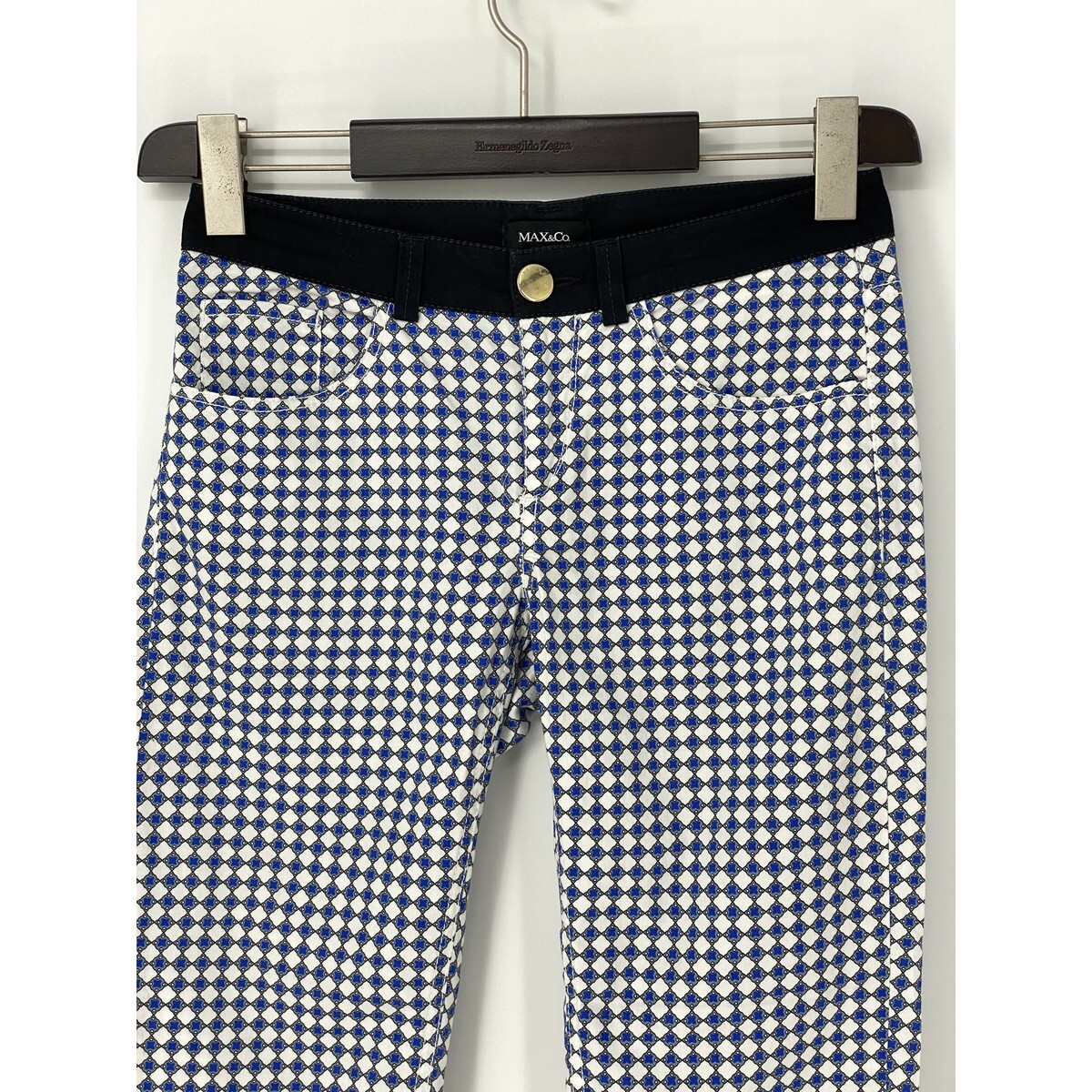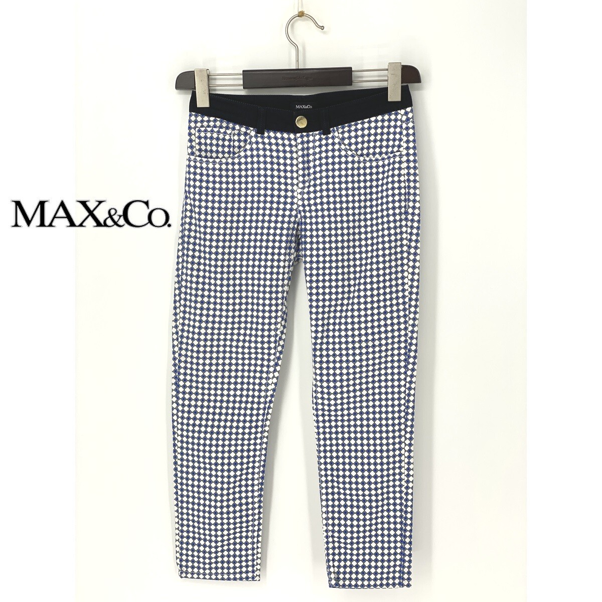A9913/極美品 春夏 Max&Co マックスアンドコー コットン ストレッチ 総柄 アーガイル柄 テーパード スラックス パンツM程 38 白 レディース