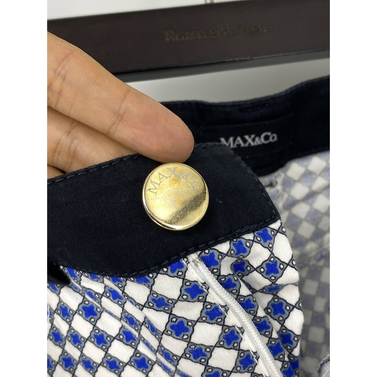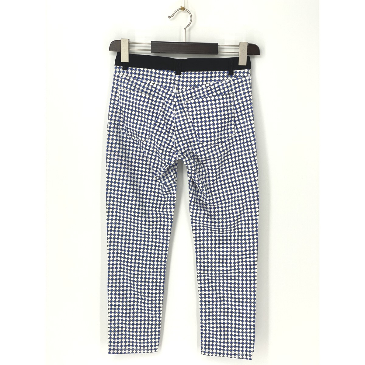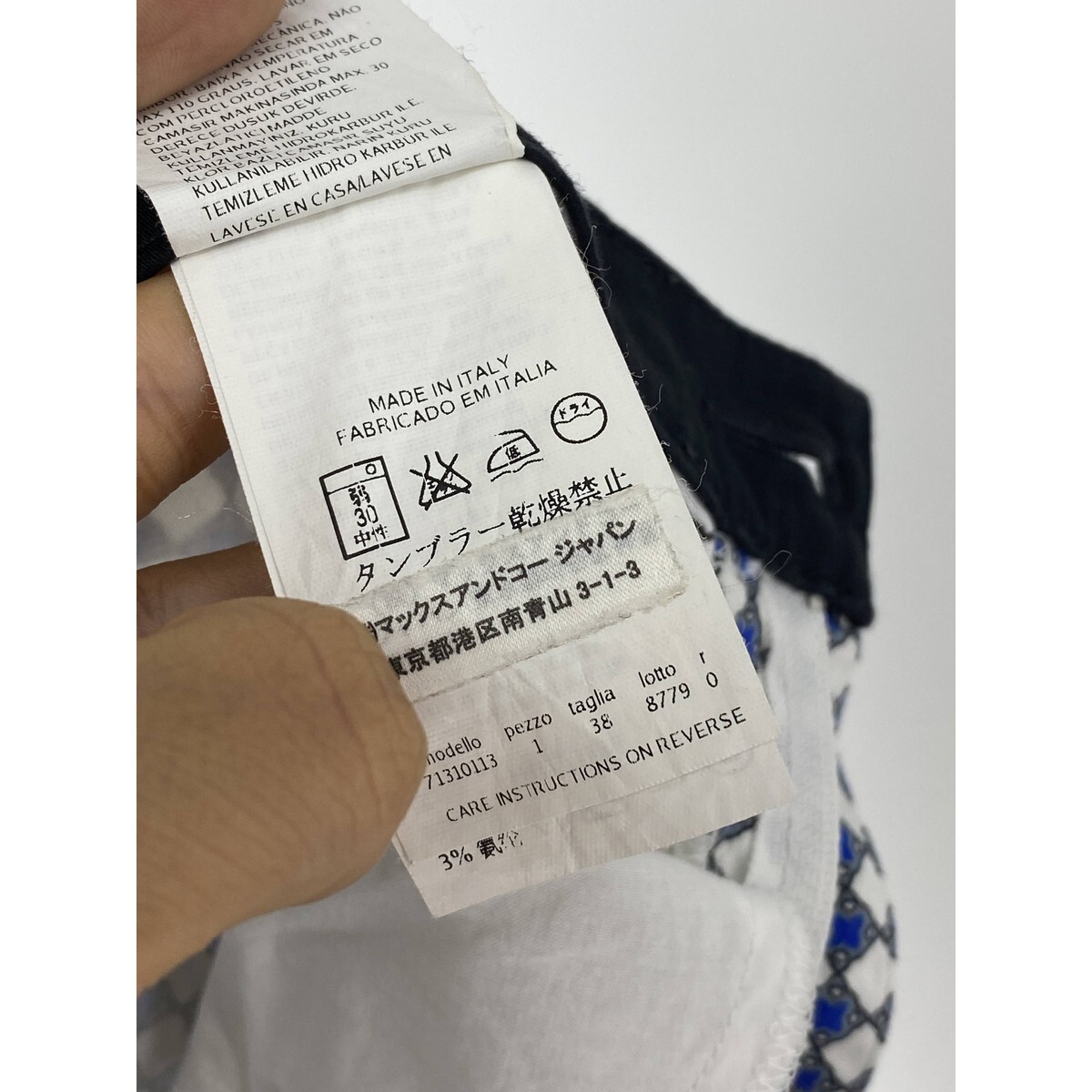 A9913/極美品 春夏 Max&Co マックスアンドコー コットン ストレッチ 総柄 アーガイル柄 テーパード スラックス パンツM程 38 白 レディース