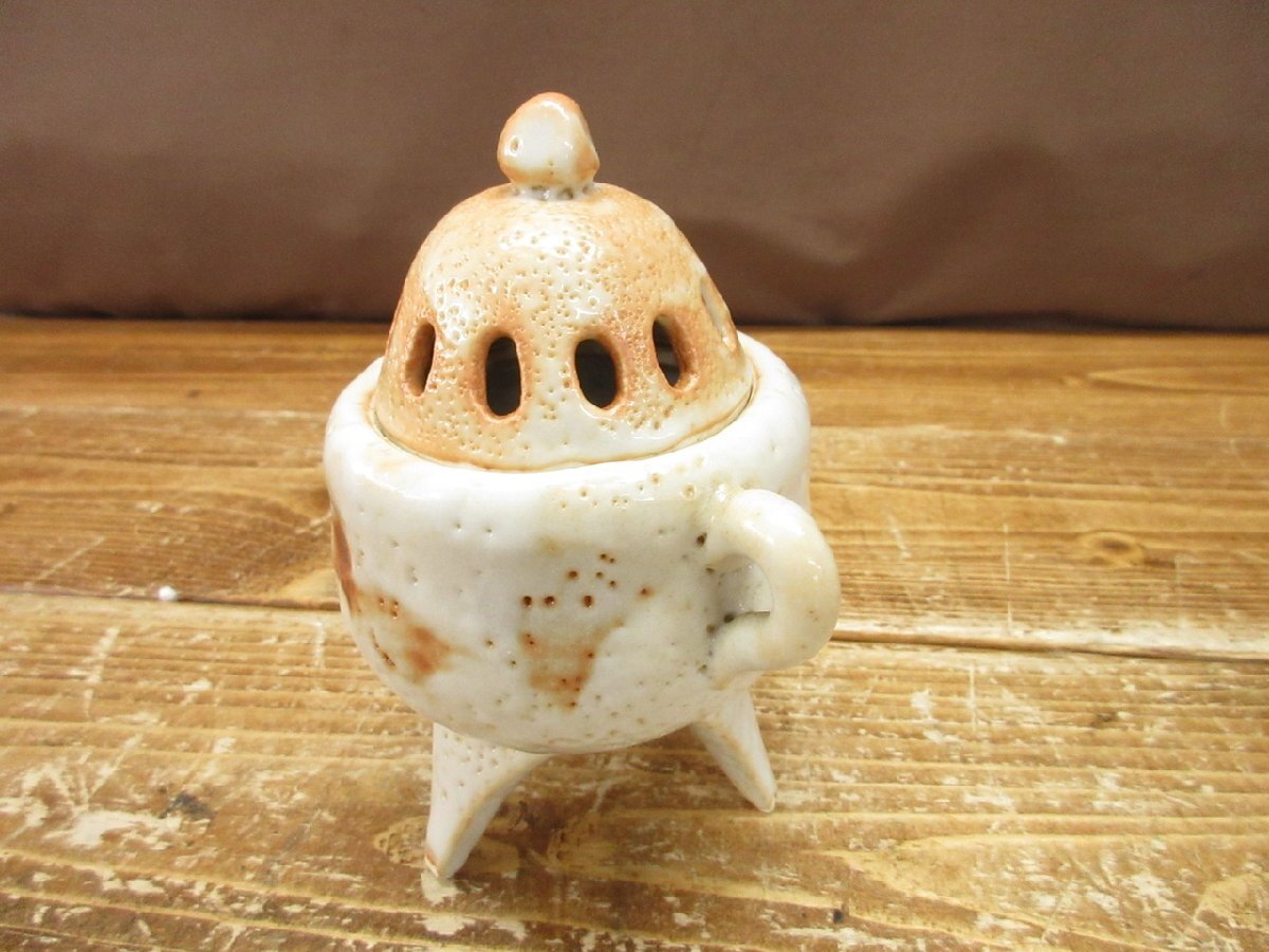 【NB-3218】志野焼 香炉 美濃陶芸 工芸品 陶器 やきもの 高さ 約14.5㎝ 詳細不明 現状品【千円市場】
