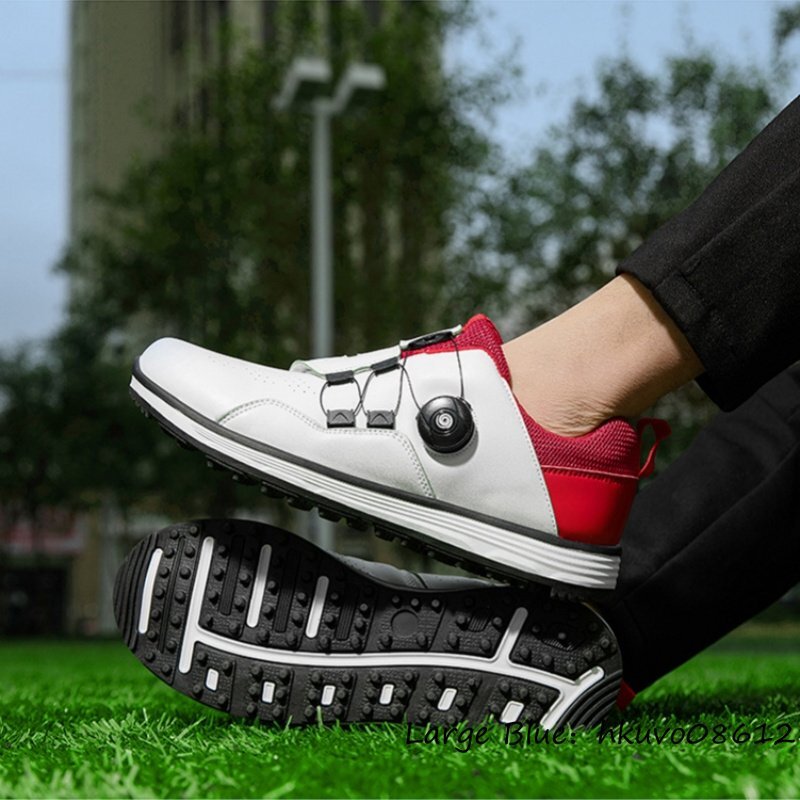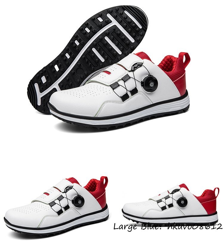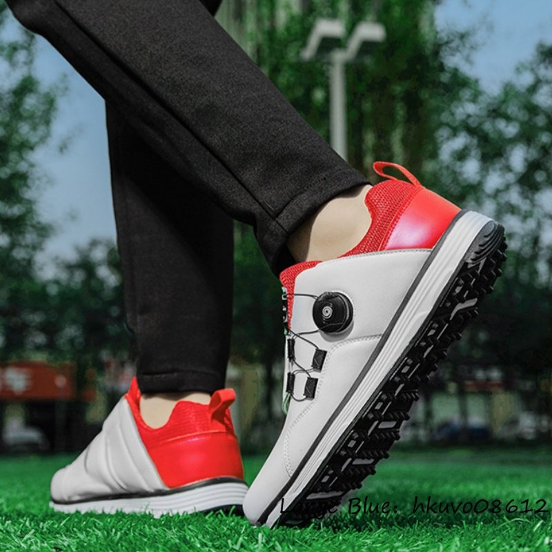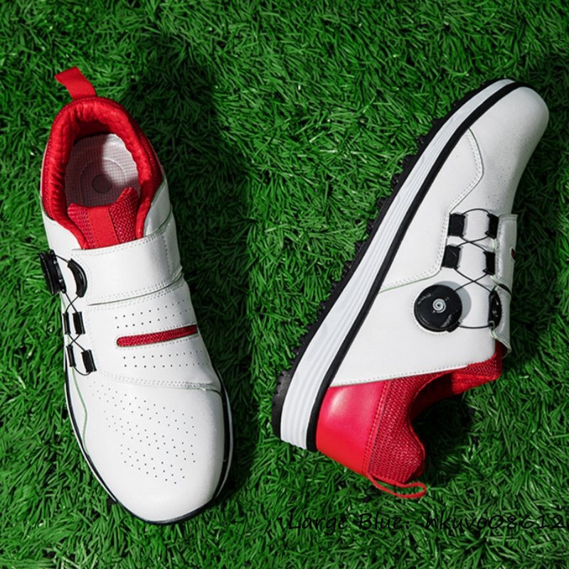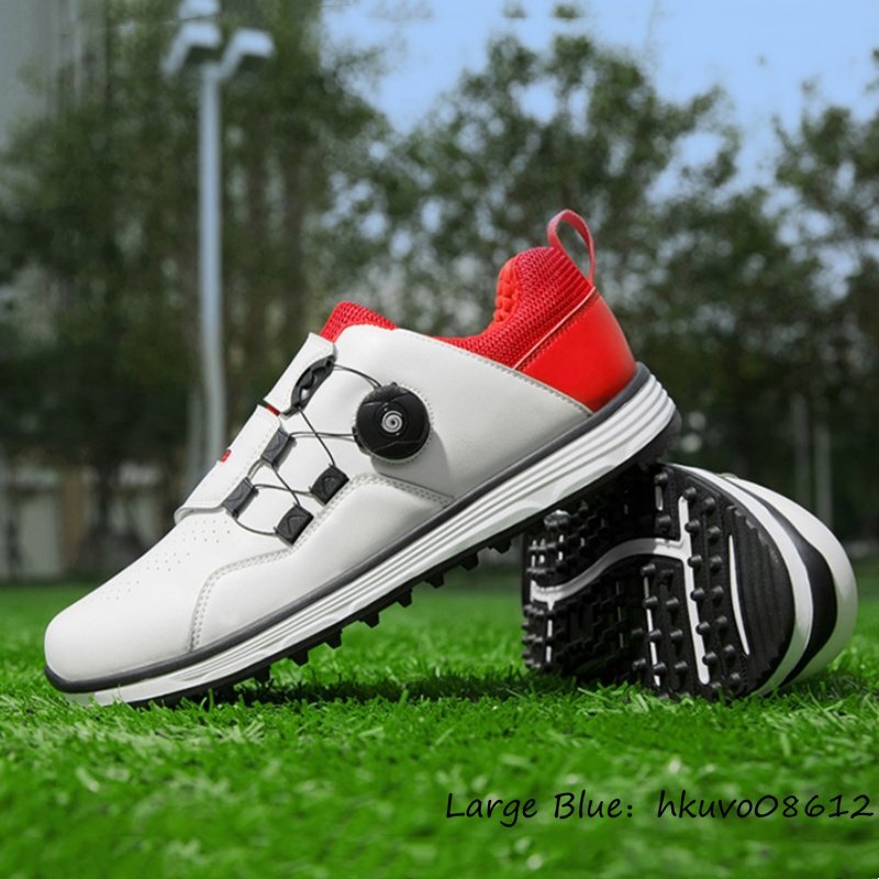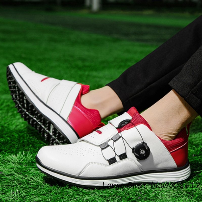人気新品 スポーツシューズ メンズ ゴルフシューズ ダイヤル式 軽量 運動靴 4E 幅広い フィット感 防水 防滑 耐磨 弾力性 白/赤 27.0cm