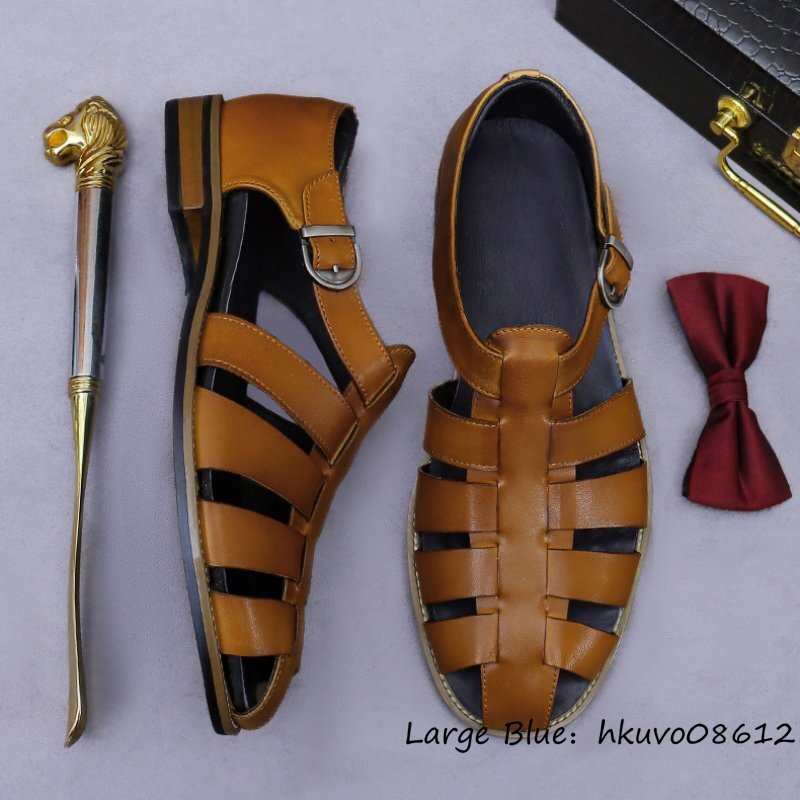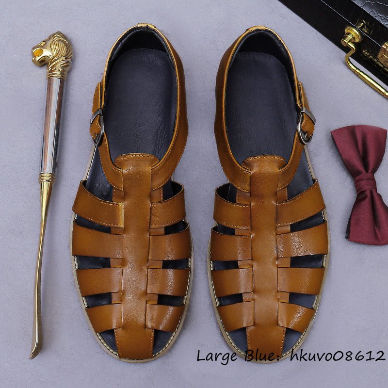 定価9万◆サンダル 編み込み 本革 職人手作り レザーシューズ スリッパ ビジネスシューズ 革靴 高級牛革 革靴 新品 通気性 ブラウン 25.5cm