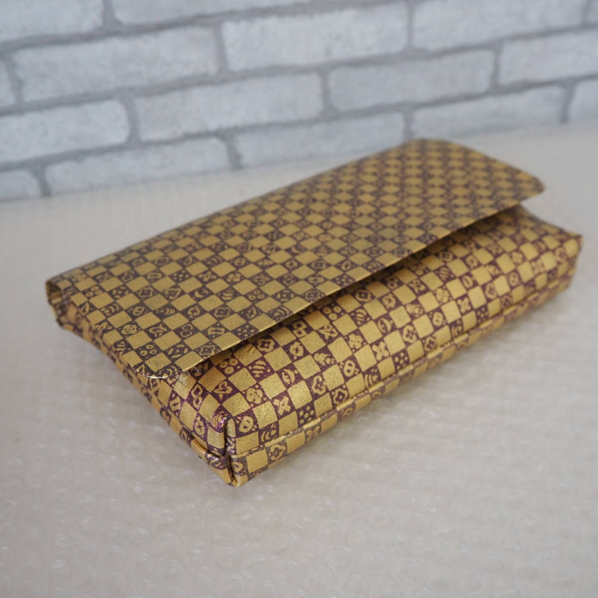 *美品*和柄*市松*プリントレザー*クラッチバッグ*クラッチ*バッグ*ゴールド*