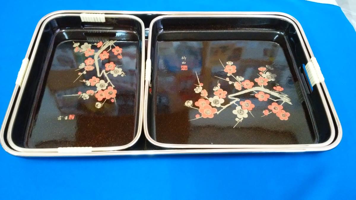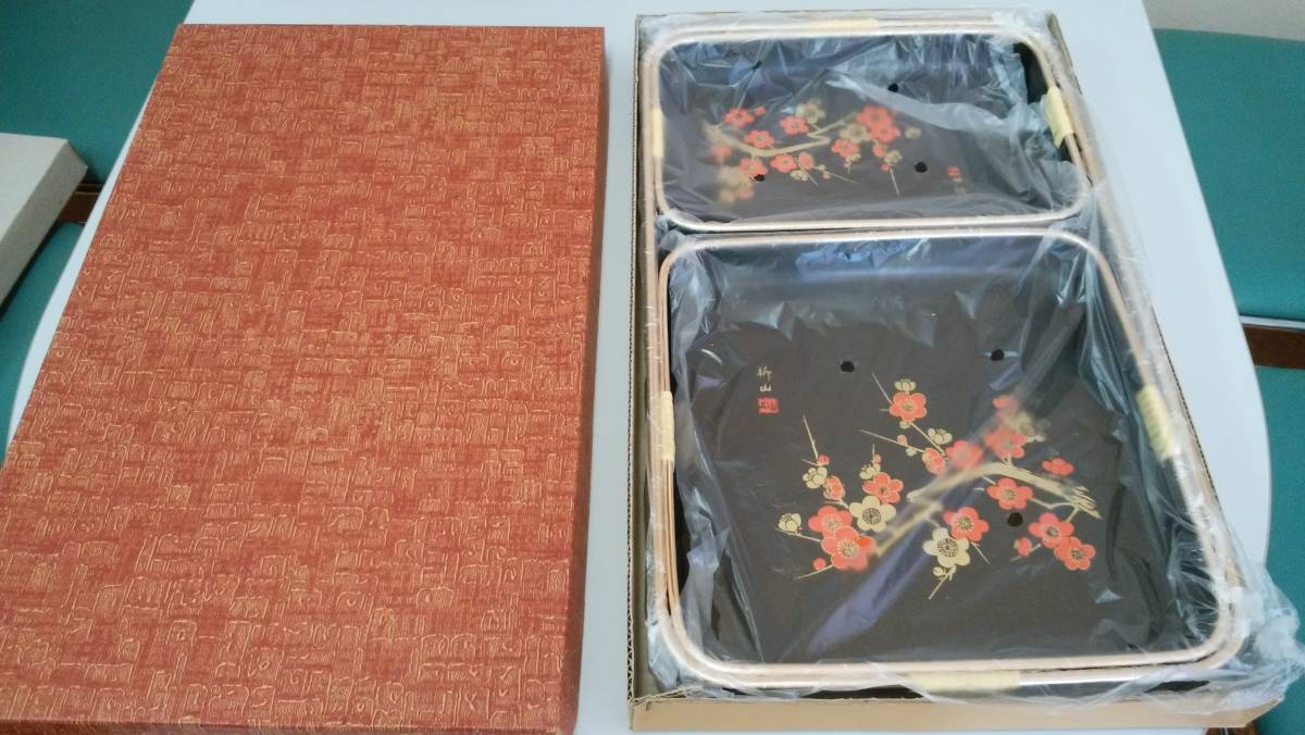 | 商品説明 | サイズ 大: 幅47cm×奥行28.5cm×高さ4cm(約) 中: 幅27cm×奥行27cm×高さ3.3cm(約) 小: 幅27.5cm×奥行18cm×高さ3.3cm(約) ・外箱付(長期保存品の為、外箱は汚れ有ります) ・お盆は箱に守られ、未使用のままきれいに保存されてます。 |