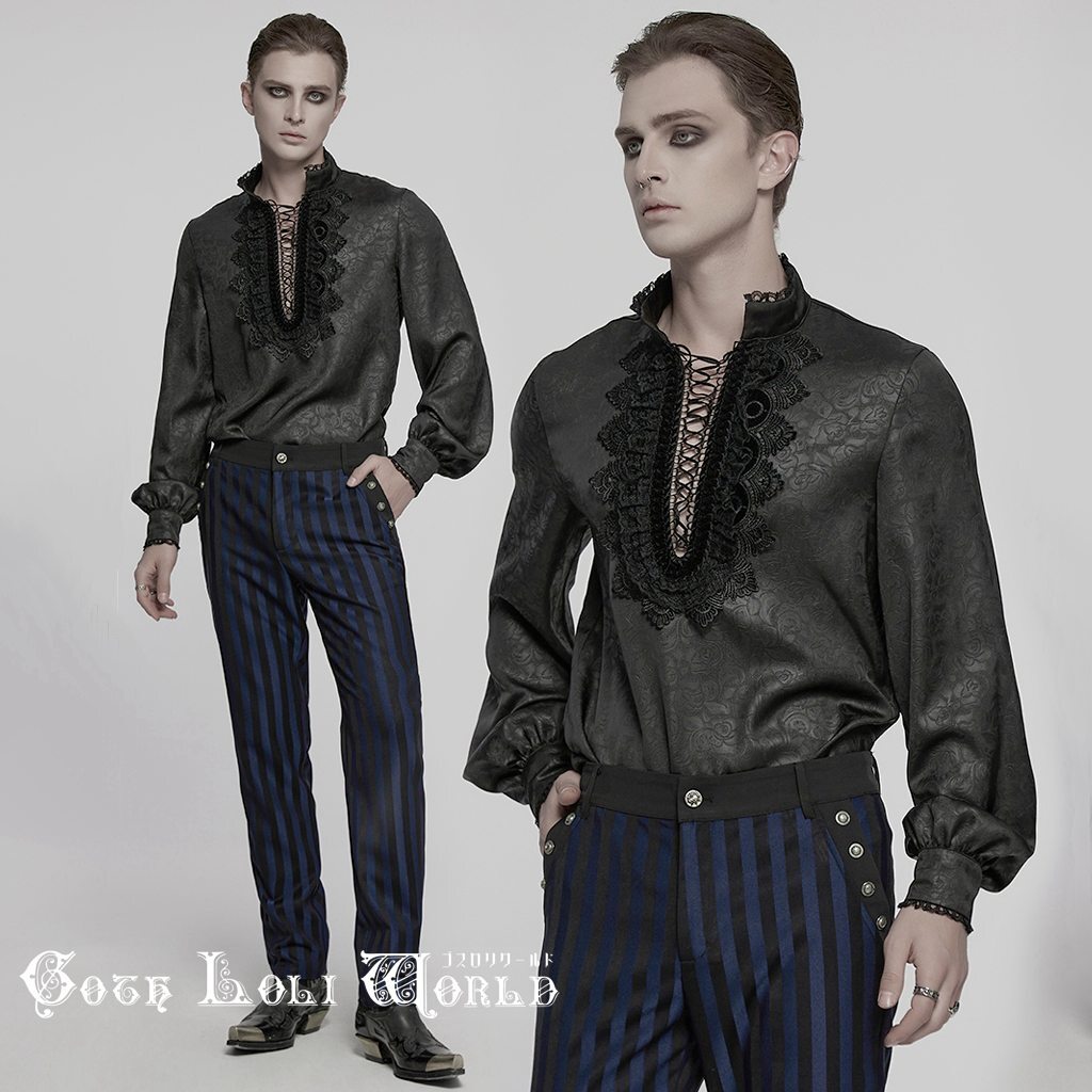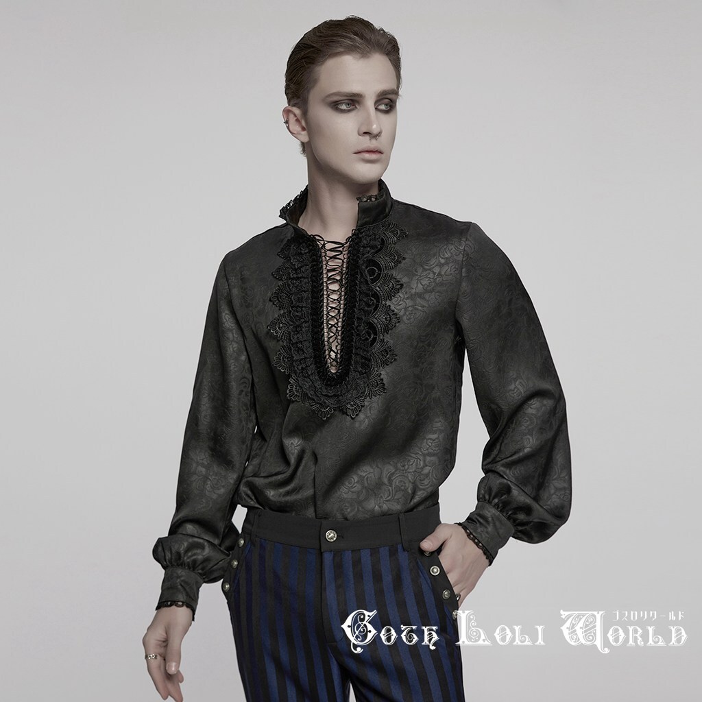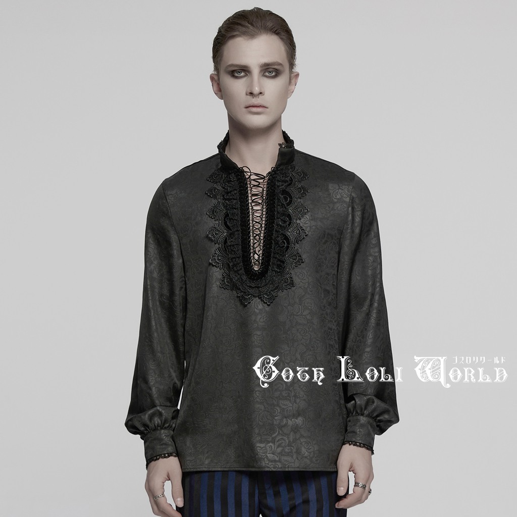 即納 WY-1785CCM-BK-S ゴシックファション ジャカード カットソー 黒色 紳士 ジェントルマン 貴族 男爵 ゴシック スチームパンク