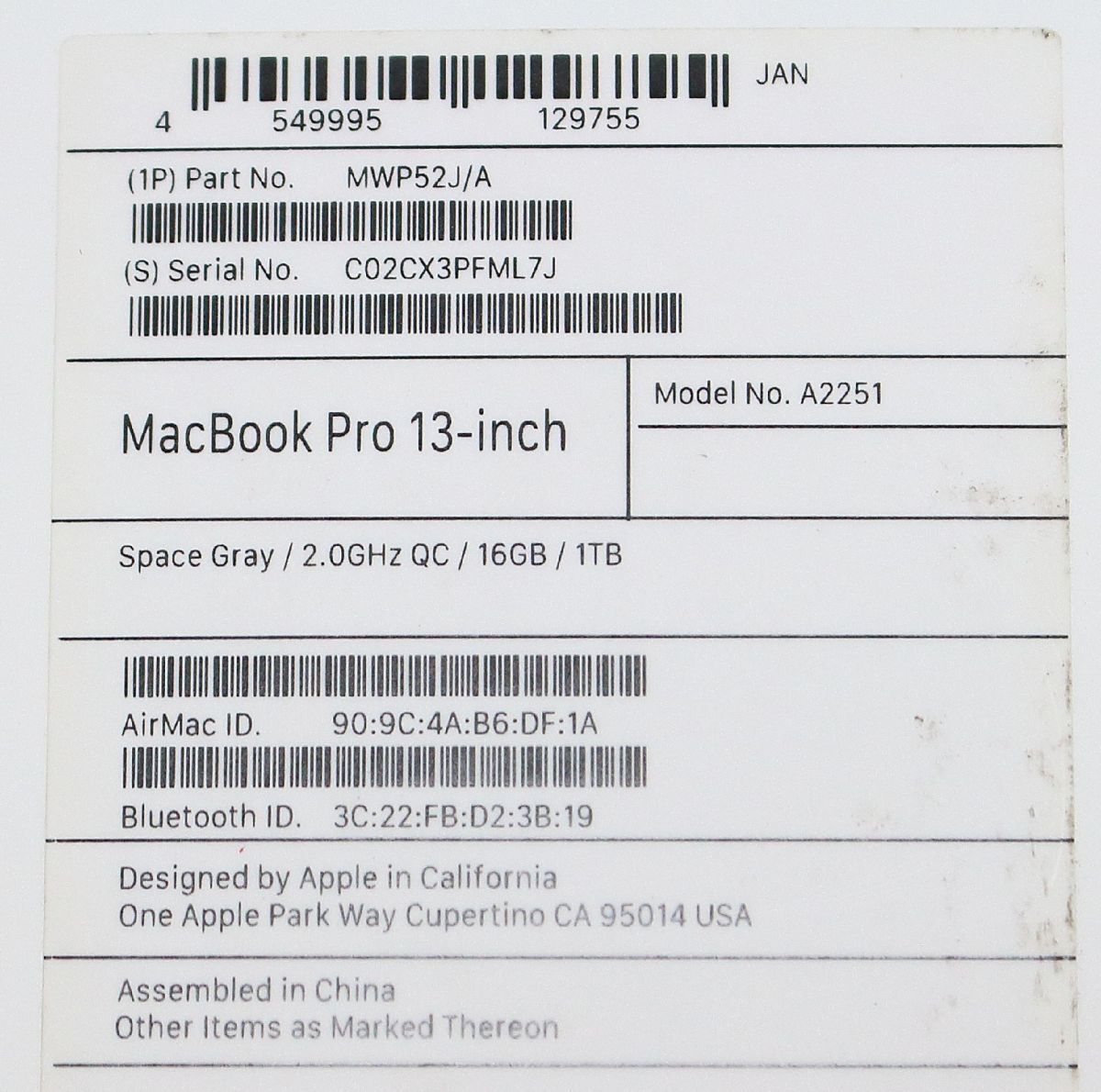 ◇ Apple MacBook Pro 13インチ 2020 MWP52J/A A2251 ◇MHD14115 | |
