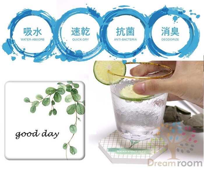055-01 吸水力抜群 速乾性 珪藻土 かわいい コースター 正方形 リーフ 速乾 水滴を素早く吸収☆