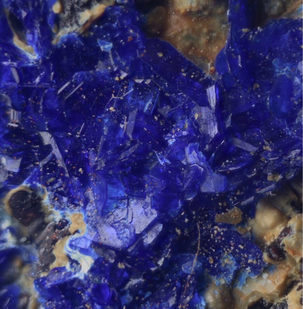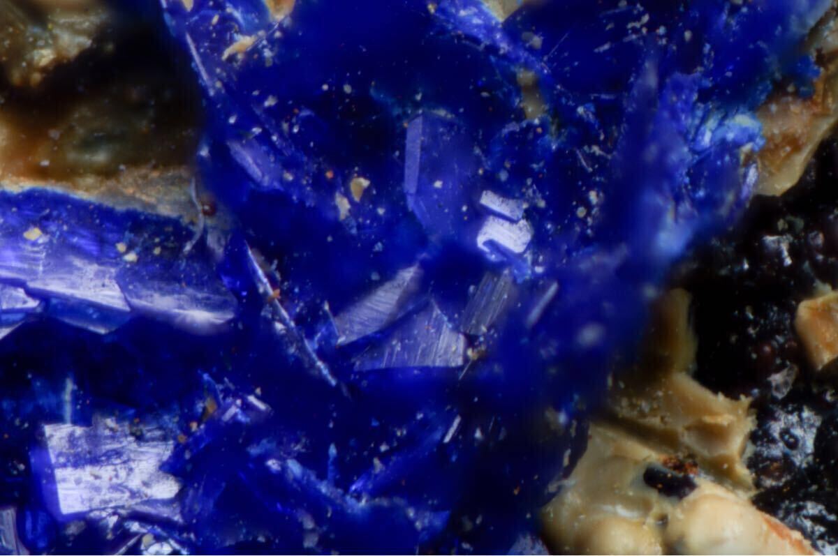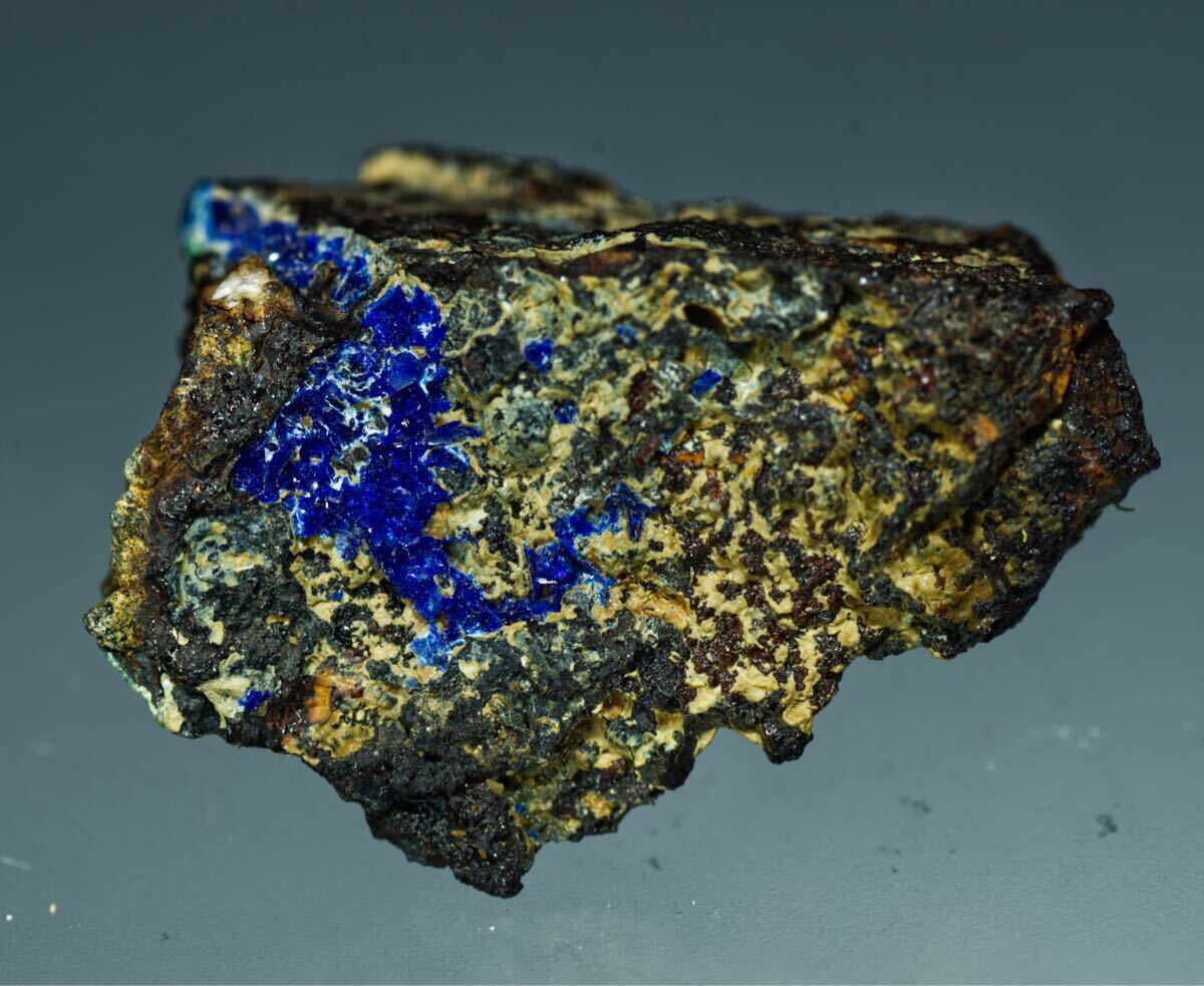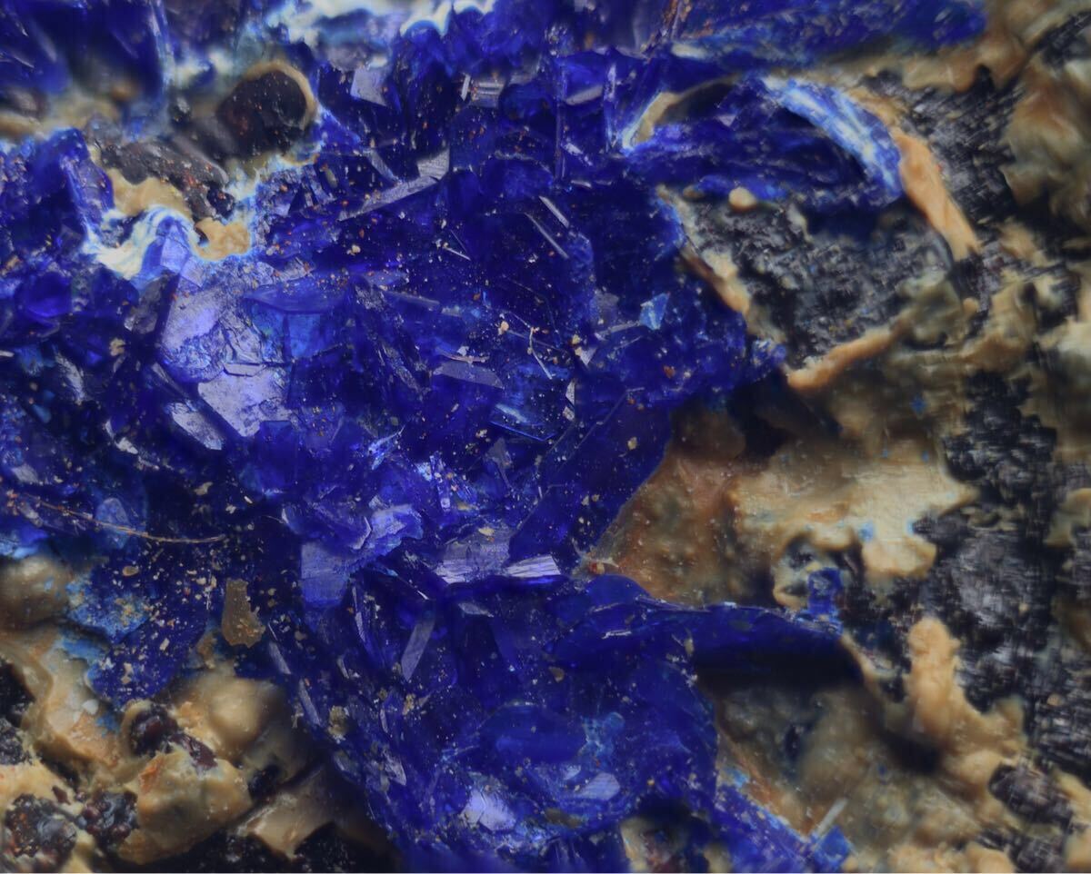 非常に美しい藍銅鉱結晶が見られる標本です。