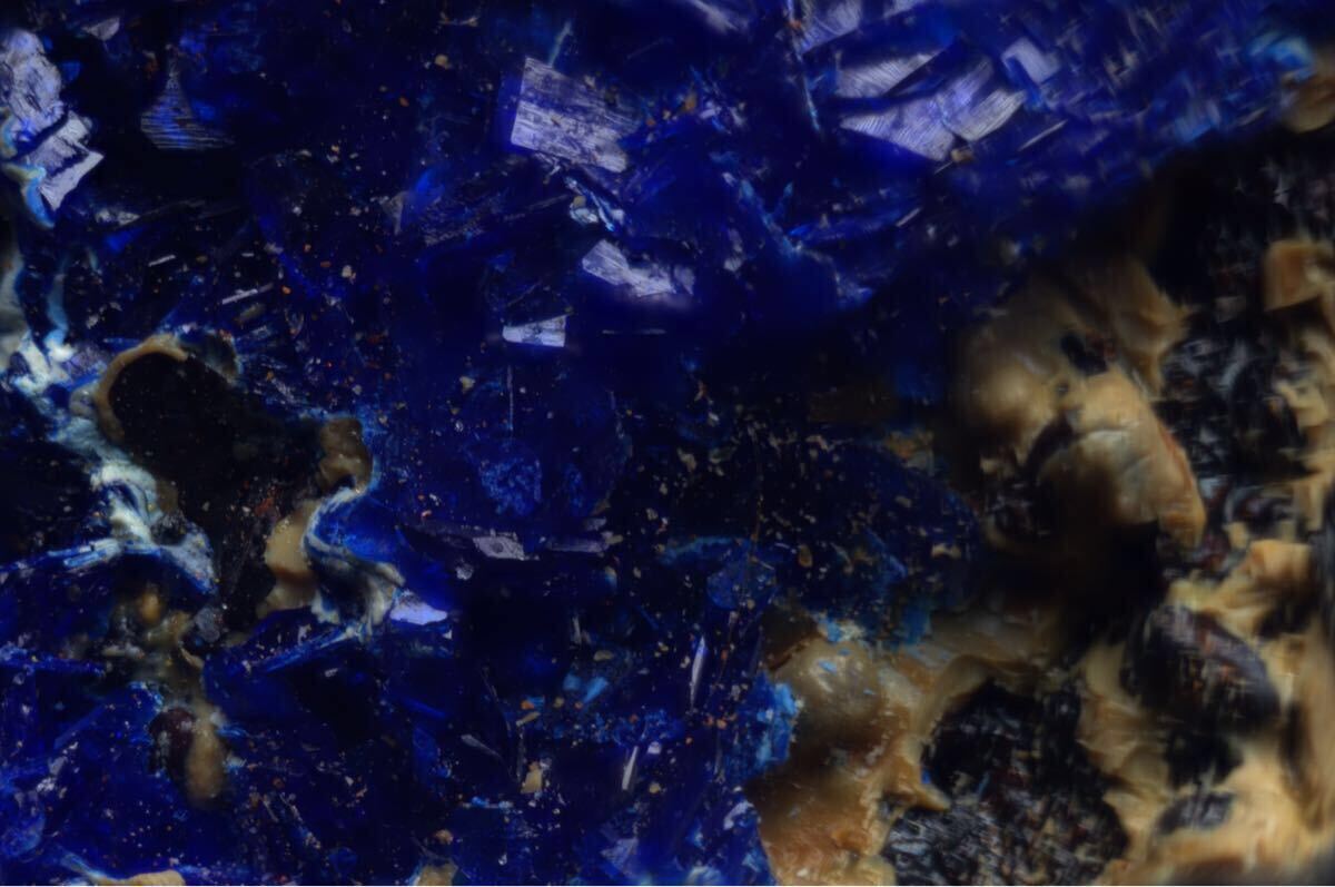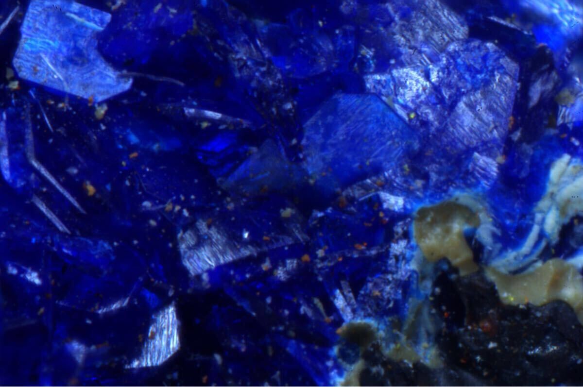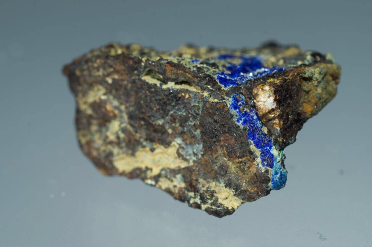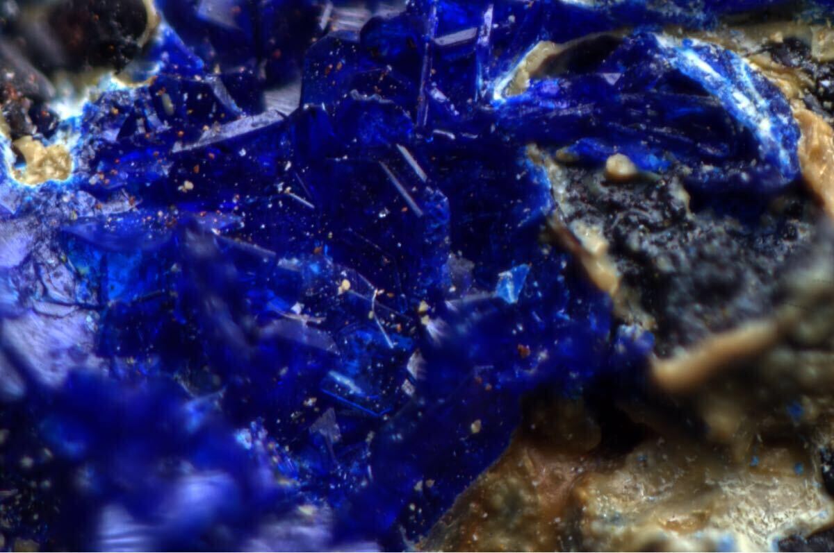 非常に美しい藍銅鉱結晶が見られる標本です。