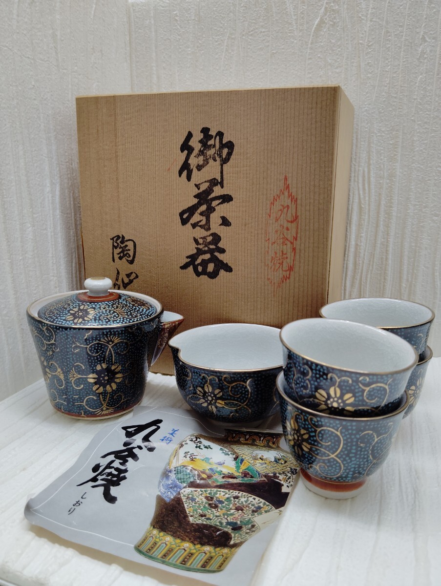 九谷焼 陶仙 御茶器  急須  湯冷まし  湯呑  茶器  茶器セット 青粒 自宅保管品