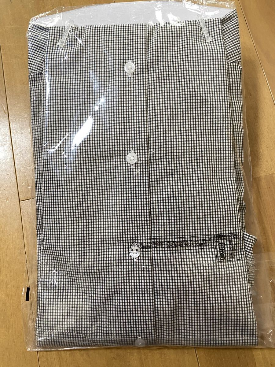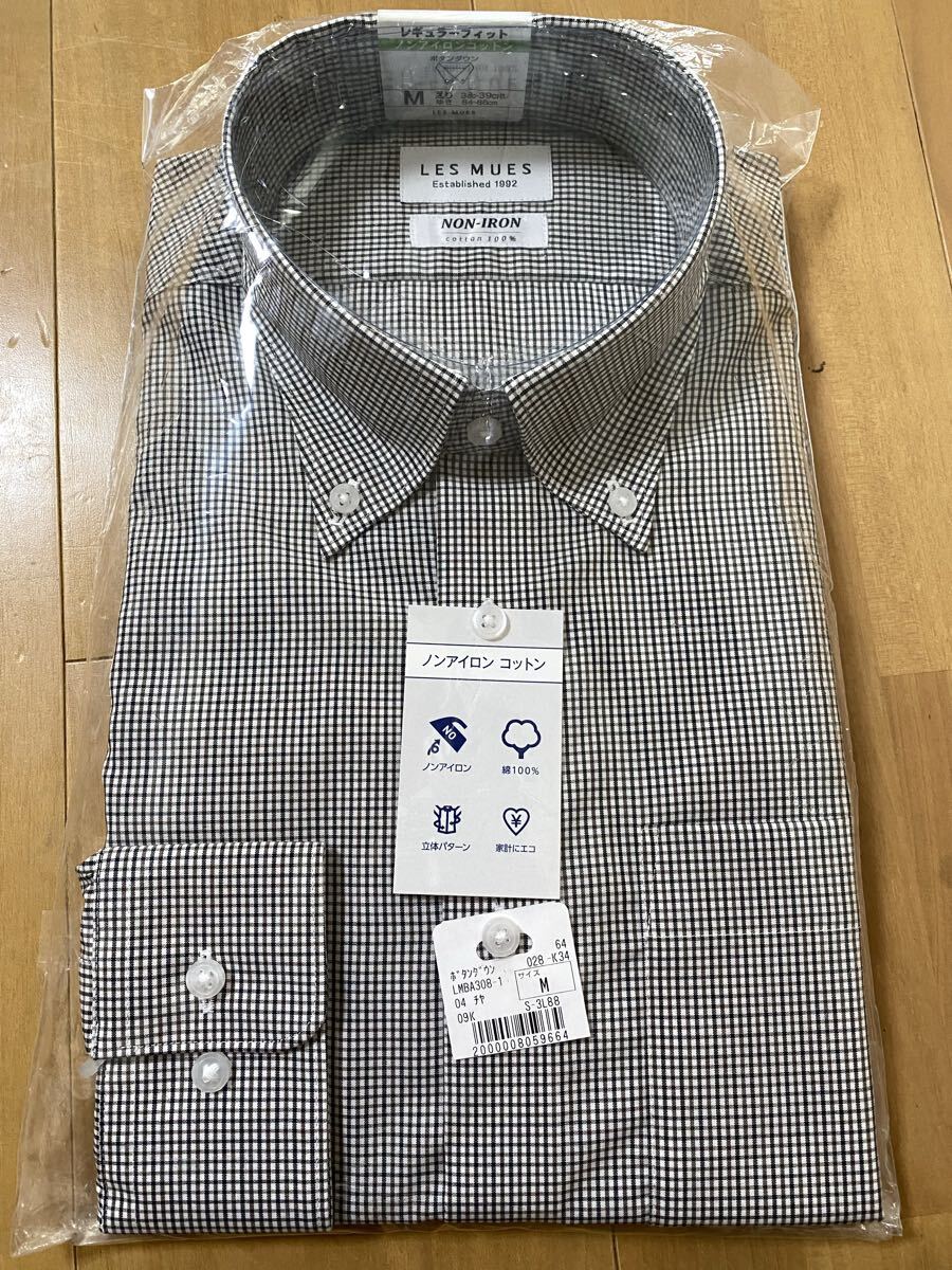 ノンアイロンコットン素材のチェック柄シャツ、Mサイズ、快適な着心地。
