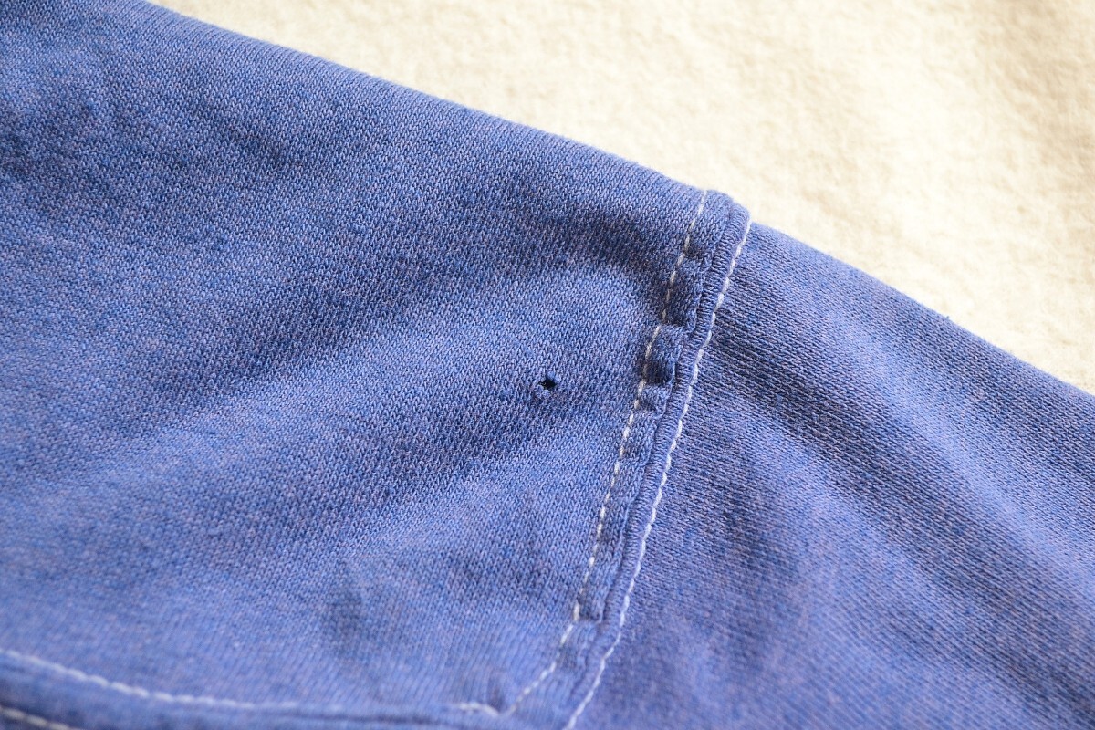 左肩の前と後ろに小穴あります。プリントひび割れあります。