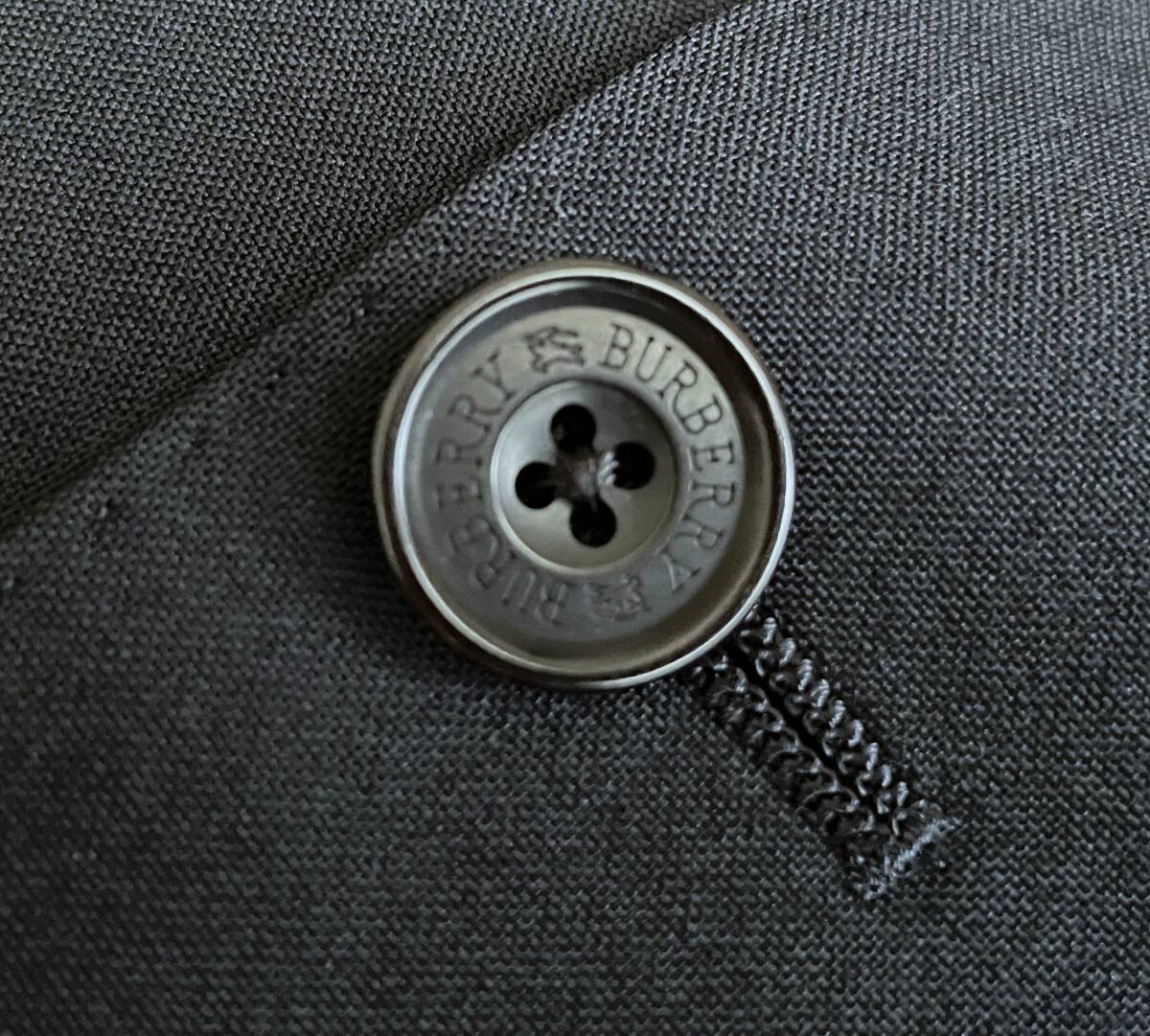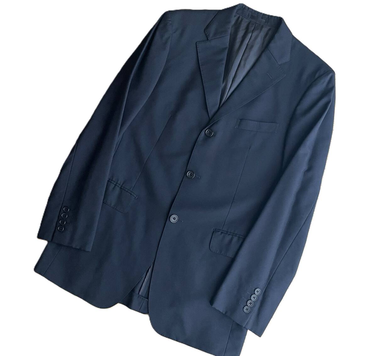 | 【ブランド】 BURBERRY BLACK LABEL バーバリーブラックレーベル 【デザイン・モデル】 撥水加工 ウール地 3B セットアップ スーツ 【生産】 株式会社 三陽商会 日本製 【詳細・コメント】 BURBERRY BLACK LABEL バーバリーブラックレーベルのセットアップ スーツになります。撥水加工が施された上質ウール地を使用。希少なダークネイビーカラーにロゴ刻印入りボタンや、内ポケット部にはノバチェック柄を採用するなど、シンプルながらもバーバリーブラックレーベルらしいディティールが映える逸品。洗練されたスタイリッシュなシルエットで、幅広いシーンで活躍します。仕立ては、(ジャケット)シングル3ボタン・袖口4ボタン・背抜き・サイドベンツ、(パンツ)ツータック・ジップフライ・裾はシングル。この機会にいかがでしょうか。 正規品です。 【サイズ】 表記:42R 96-80-180(メンズXL程度)※実寸を参考にして下さい。 平置実寸:(ジャケット)身幅53㎝ 着丈78㎝ 肩幅46㎝ 袖丈65㎝(パンツ)ウエスト80㎝ 股上28㎝ 股下80㎝ ワタリ33㎝ 裾幅22㎝ (ウエスト4cm・また下8cm程度出すことが可能)※多少の誤差はご了承ください。 【カラー・パターン】 濃紺 ダークネイビー(黒に近いです。) ※ご覧になられるモニターや、デジカメの撮影具合によって色味が異なる場合がございますのであらかじめご了承ください。 【品質】 表地:(ジャケット) 羊毛100%(撥水加工素材使用) 裏地:(胴)キュプラ・ポリエステル (袖)キュプラ (パンツ)羊毛100% 裏地:ポリエステル 【コンディション】 USED 中古品です。多少使用感があり、袖先裏のスレ汚れ・パンツの右足に下から38㎝上の所に5㎜ほどの小破れがございます(写真参照)。ですがその他に目立ったダメージはございませんのでまだまだ着用していただけます。神経質な方は入札をご遠慮くださいませ。※写真参考に判断して下さい。ユーズドアイテムにご理解ある方のみご入札お願い致します 。 | |||
