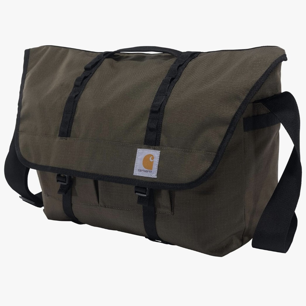 人気ブランド『Carhartt』の、カーハートのメッセンジャーバッグです。整理整頓できる大きなメインコンパートメント、後ろ側には2つのメッシュジッパー式ポケットがついている収納力に優れた造りになっています。