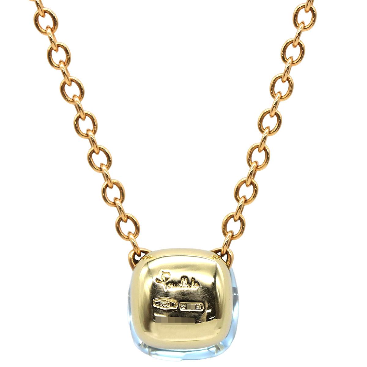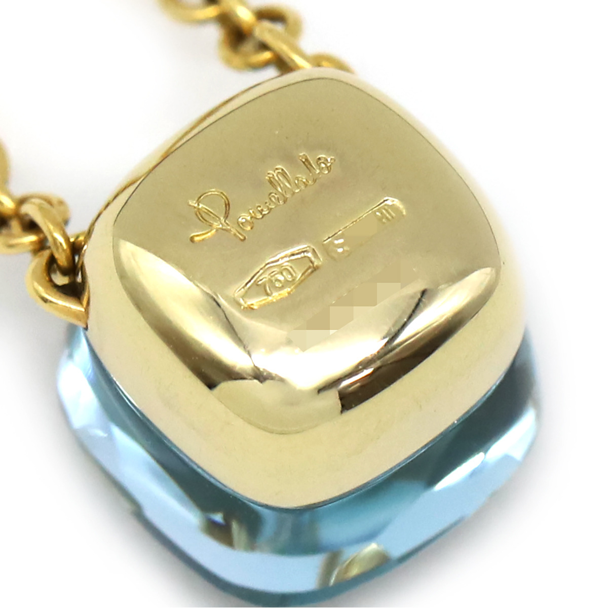 ポメラート ネックレス K18PG ゴールド ブルートパーズ Au750 18K 18金 スクエアモチーフ 中古