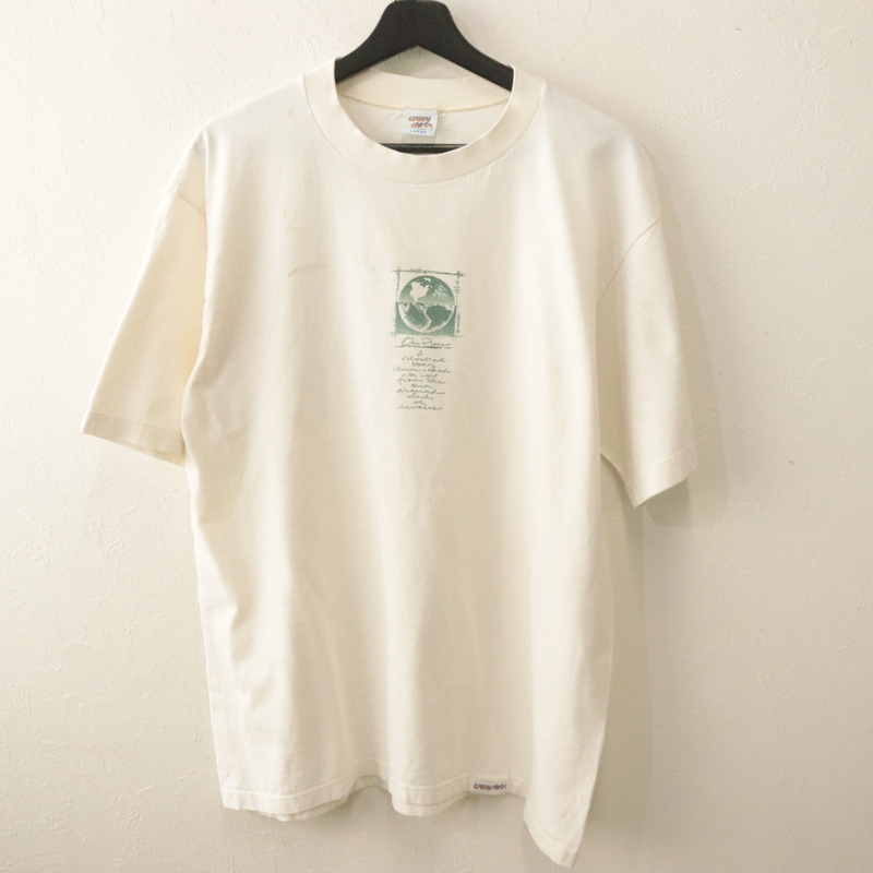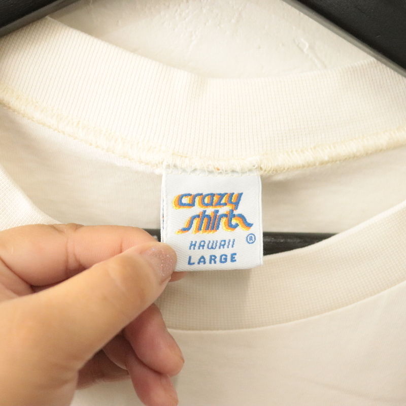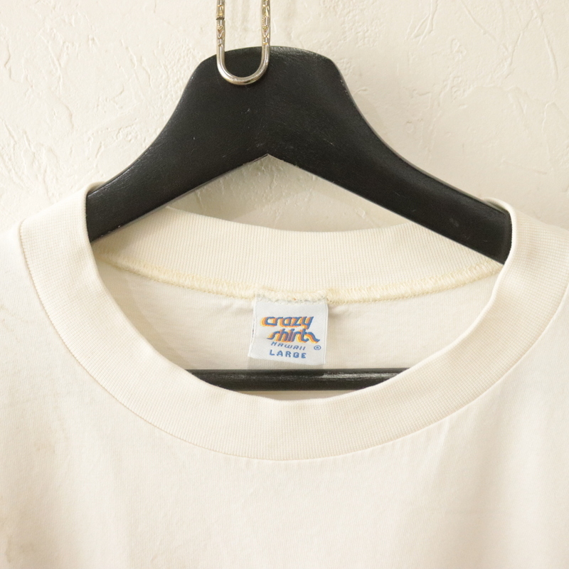 商品名 i464 90sビンテージ Crazy Shirts 半袖プリントTシャツ USA製■1990年代製 表記Lサイズ 白 ホワイト メッセージ アメカジ 古着 激安 古着卸