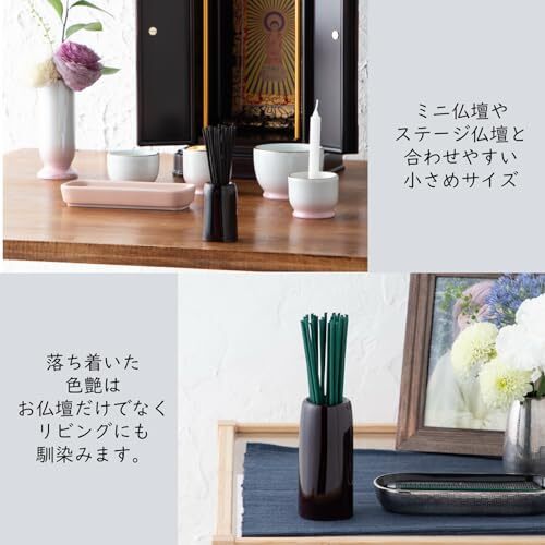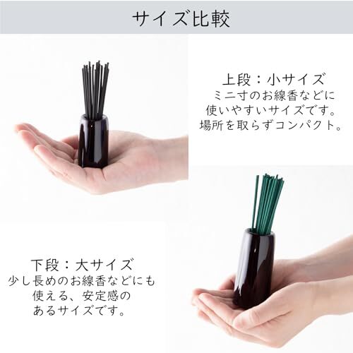 ・サイズが2種類あるため、使いたいお香に応じてサイズをお選びいただけます。コンパクトかつ落ち着いたシンプルなデザイン、色のため、リビングやミニ仏壇、ステージ仏壇などはもちろん、ヨガや瞑想の時に使うお香を、インセンスホルダーの近くにまとめておくなどの用途にもご使用いただけます。
