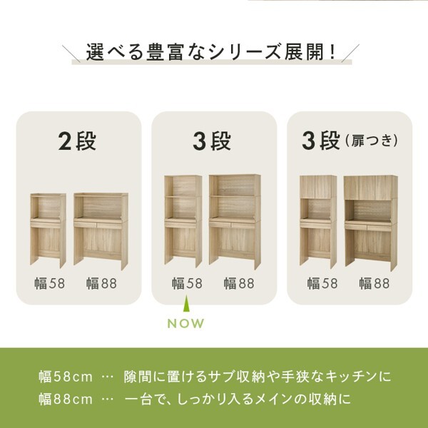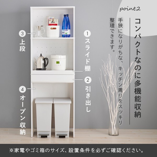 ※現在ご覧の商品ページはホワイトウォッシュのご購入ページとなります。 ヤフオクの仕様上単一ページに複数バリエーションを掲載することができませんので、他バリエーションが希望の場合は別ページでご購入お願い致します。 出し入れしやすいオープンタイプの多機能収納でキッチンスペースを有効活用可能。 引出しやスライド棚付きでキッチン家電も使いやすい。 配達業者を指定いただくことはできません。 北海道/沖縄/離島のお届けに別途中継料金が発生します。 ※別途送料が発生する場合は後ほどご連絡させていただきます。 当店は正規店です。 タイミングによっては在庫切れの場合があります。