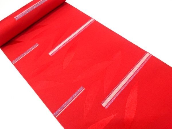 ys7491262; 横段に木の葉模様織り出し八寸帯地反物【アンティーク】【着】