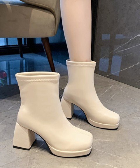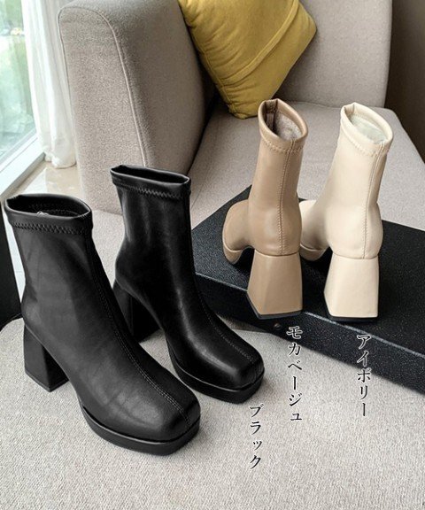 安定感のある太ヒールで歩きやすい厚底ショートブーツ