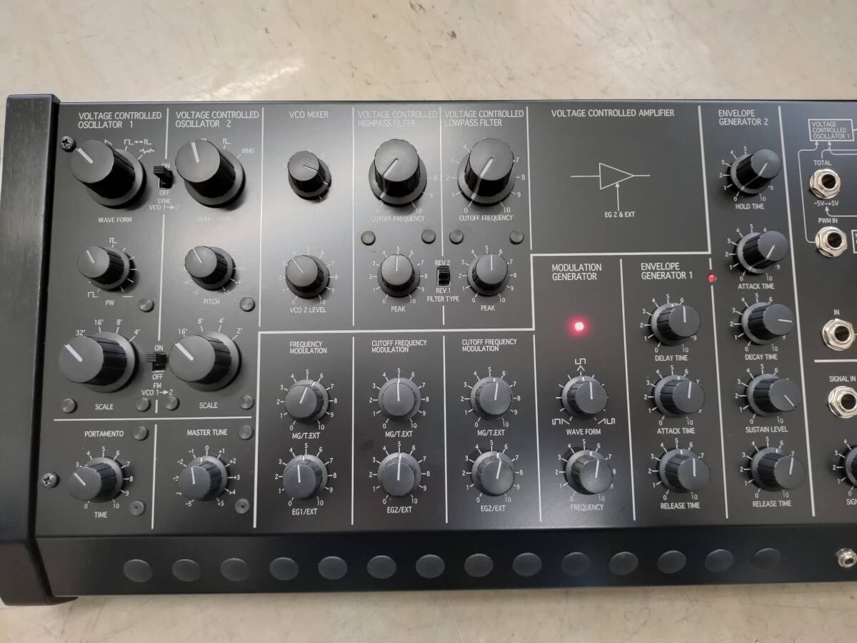 | 国内300台限定品 KORG MS-20M Kit+SQ-1 KORGヴィンテージ機種 MS-20前期 MS‐20後期をあわせもった素晴らしいシンセです。 動作問題なし 状態も発売された年数からだいぶ経っていますが良い方と思います。 パッチングで様々な音色をたくさん作れます。 オリジナルMS-20の開発エンジニア自らが設計を務めただけあってオリジナルを超えてしまっている感じがします。 シンセの勉強にもなります。 状態も良くなかなか出ないレアな一品です。 本体 KORG MS-20M 本体 SQ-1 パッチケーブル大×10 パッチケーブル小×3 アダプター 元箱 今回の商品はとても状態も良く大切に使っていただけると思います。 写真の反射具合などもあるかもしれませんが 動作には関係ありませんが本体などに傷や錆などがあるかもしれません。 中古ですので写真にて判断してください。 | |||