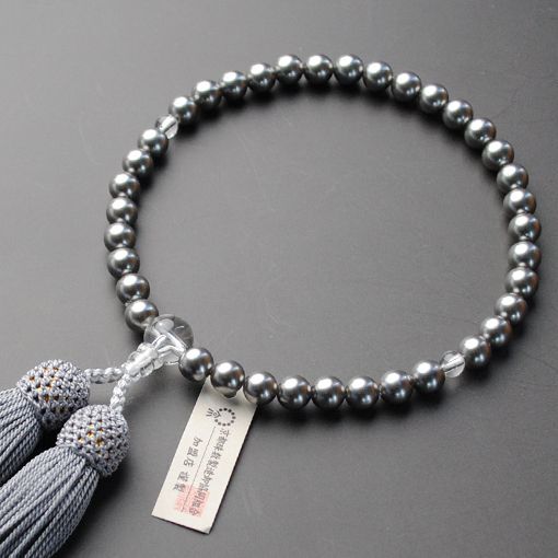 商品説明 | 数珠のブランド、京都数珠製造卸組合正規製品、全品タグ付き、化粧箱付きで送料無料 一味違い、黒貝の数珠。天然貝の色は上品な光沢感を演出します。 房は正統派の頭房(正絹製)を使用し、本場・京都の数珠職人が丹念に仕上げました。 |