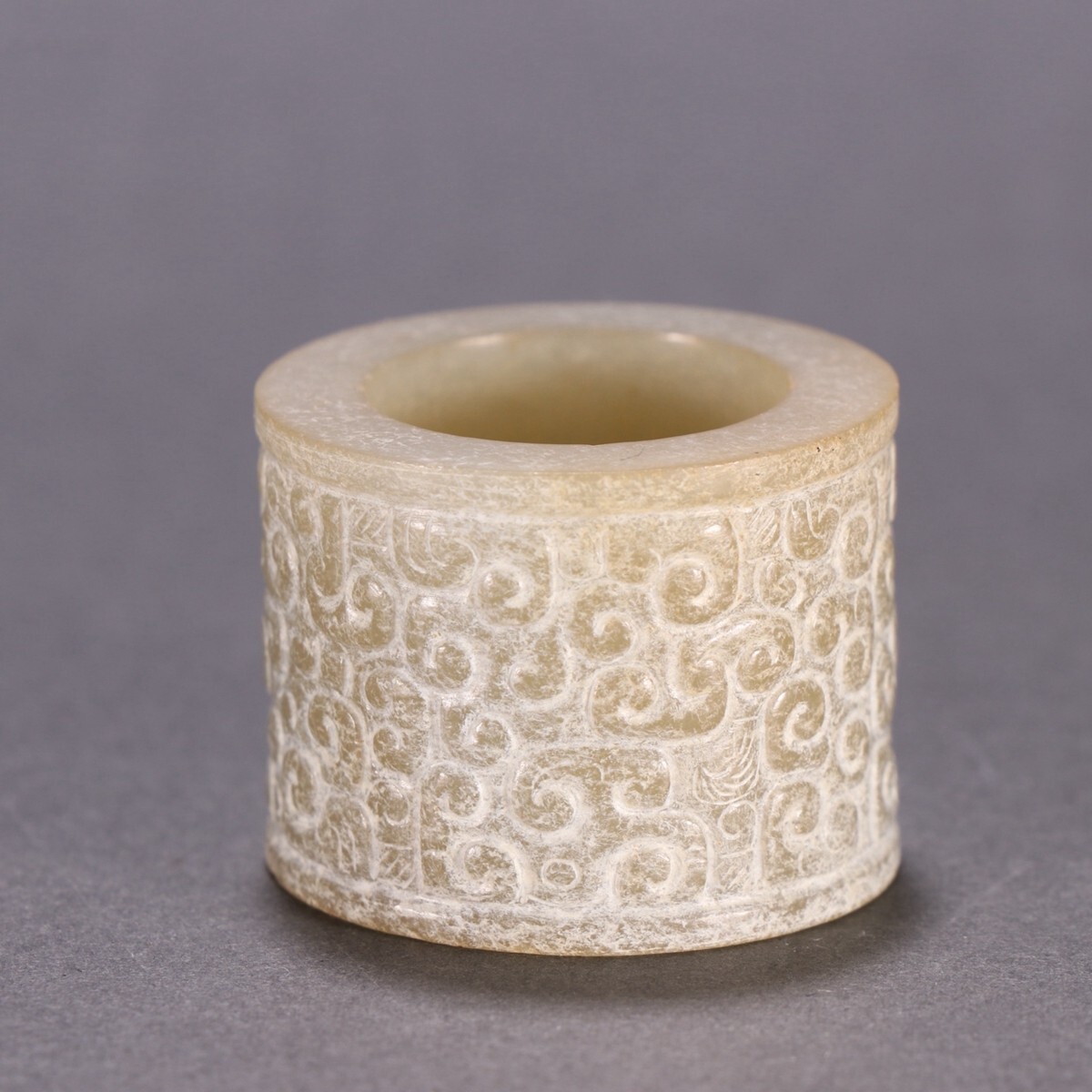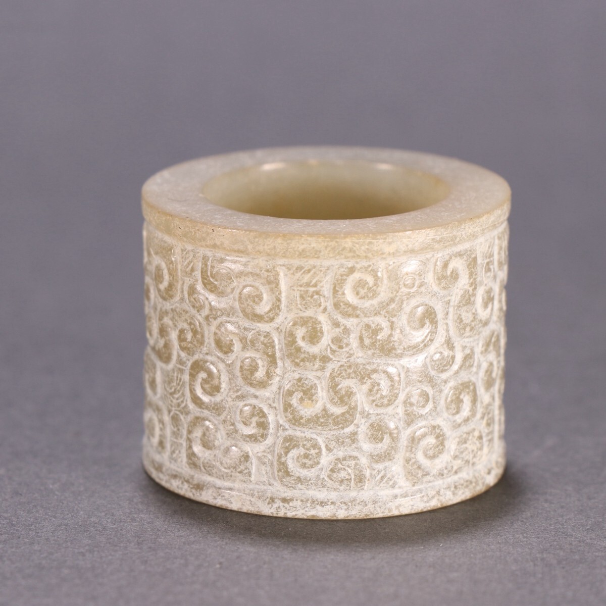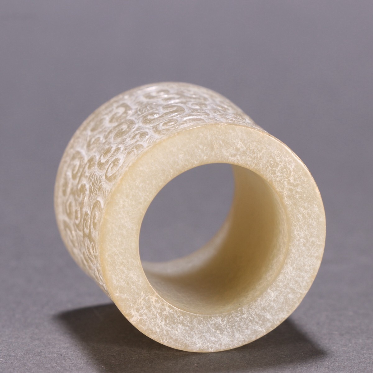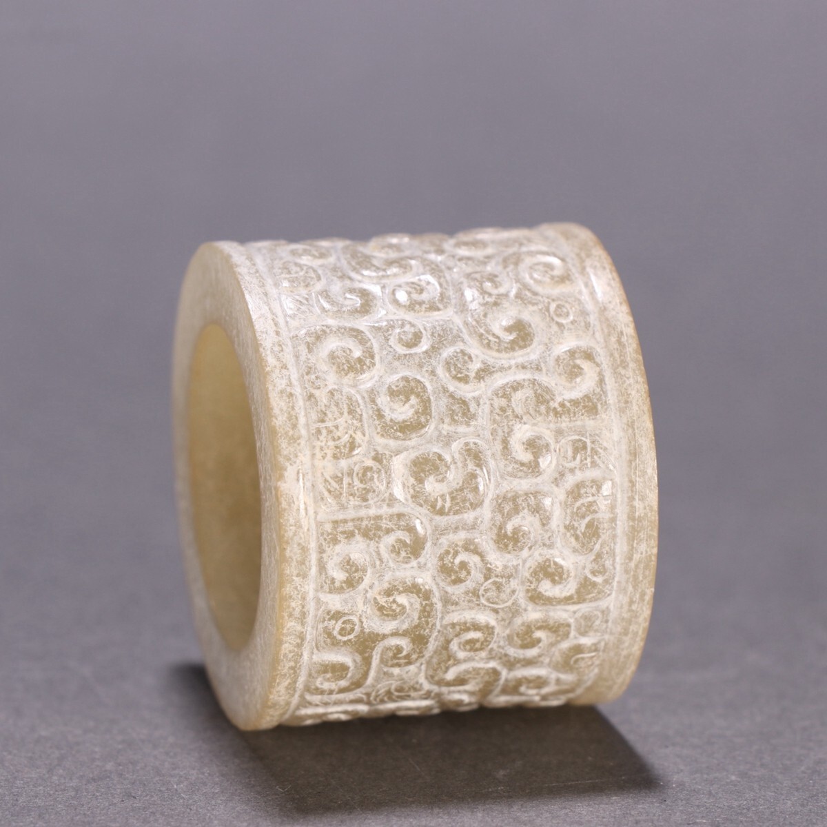 漢代 和田玉 高古玉彫 勾雲紋 板指【仁】極細工 手彫り 裝身具 古賞物 中国古美術 蔵出