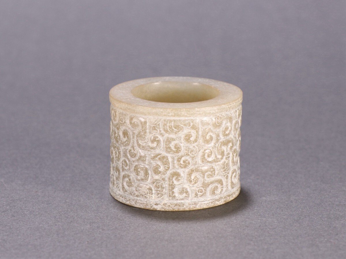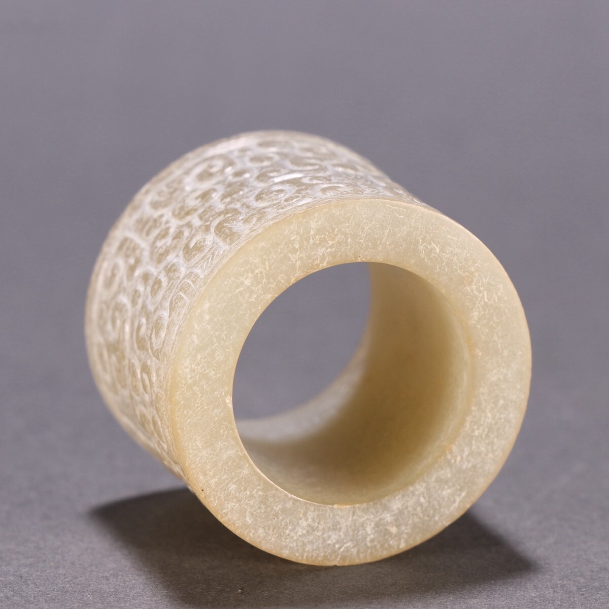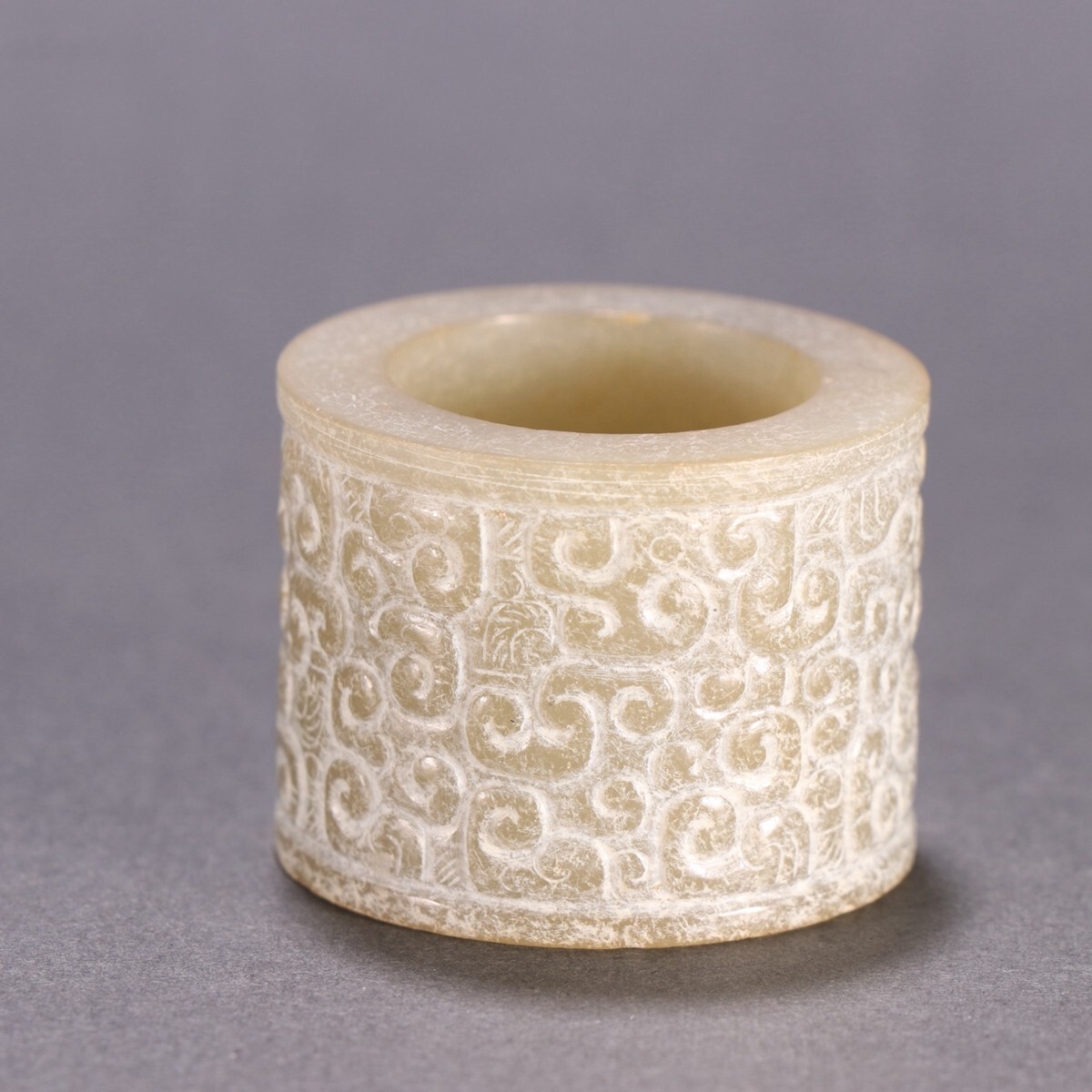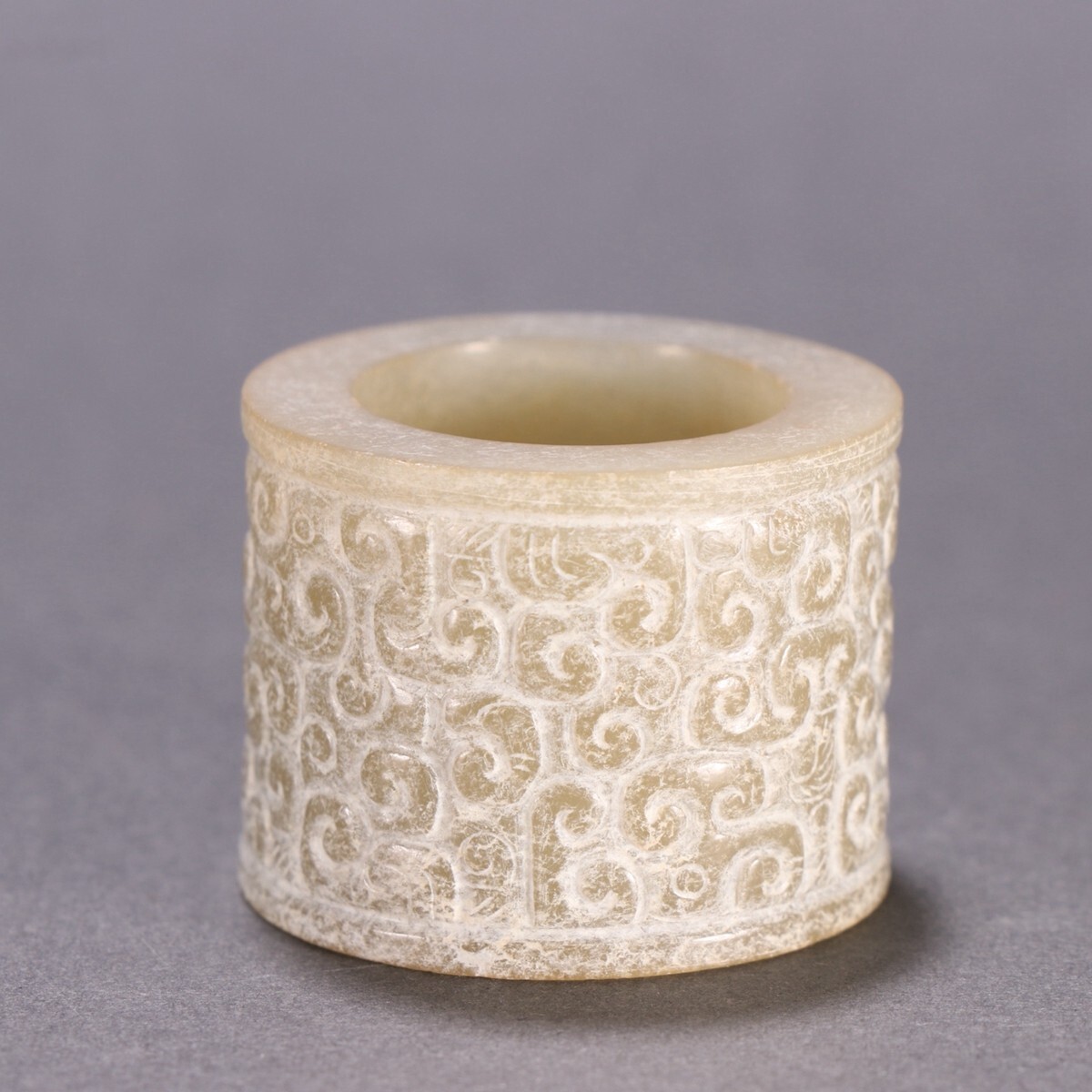 漢代 和田玉 高古玉彫 勾雲紋 板指【仁】極細工 手彫り 裝身具 古賞物 中国古美術 蔵出