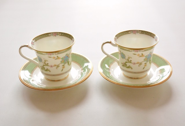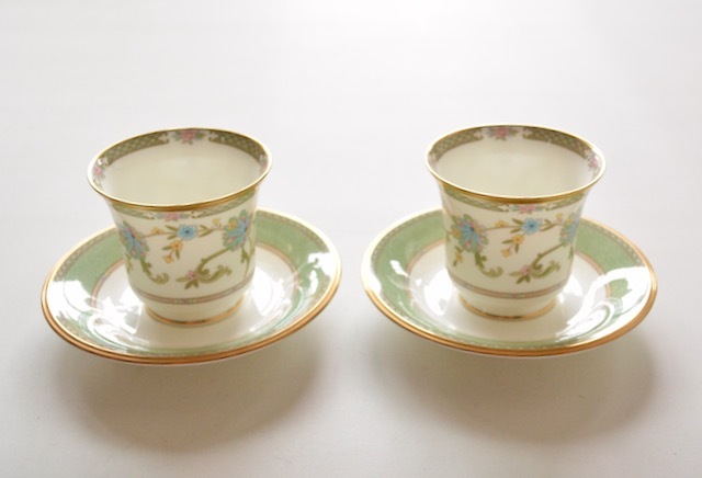 [発送方法/送料は下の方に記載しております。] ノリタケ カップ&ソーサー 2客セット 桜の名所でもある吉野山にちなんで名付けられたYOSHINO(ヨシノ)シリーズ。 オリエンタルな唐草模様で表現した桜が美しいデザインです。 参考価格 1客 8,800円 サイズ: (カップ)口径8.8cm、高さ7.8cm (ソーサー)直径15cm (サイズについて) 実寸は平置きにて測りました。若干の誤差はご了承下さい。 カラー: (画像の色ついて) PC・モバイル環境によって、また個々の色に関する認識にも個人差があります。 色表現は言葉でも写真撮影でもとても難しく、実際のお色と全く同じようには表現するには限界がありますことをご了承下さい。 状 態: 確認する限り目立つ汚れやキズ、チップ、ひびなどのダメージはありません。 * 気づいた点があれば記載させていただいておりますが、中古状態(ダメージ、匂い等々)に対する判断は個々に違います。USEDをご理解の上でご検討ください。 * 取り置き・同梱発送も承ります。(取り置きは最初の落札から5日まで。複数ですと発送方法/送料が変わる可能性があります。 |