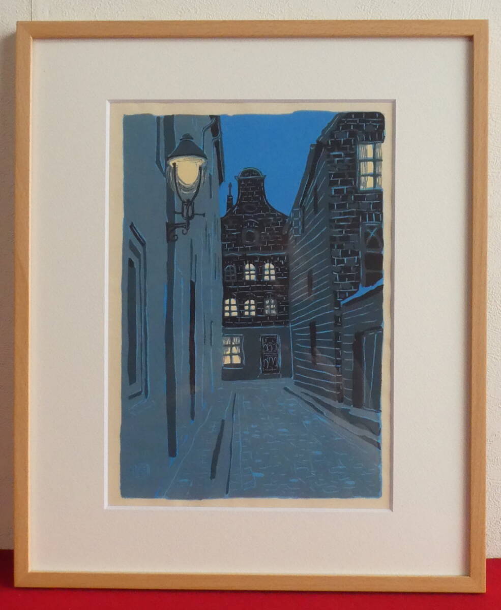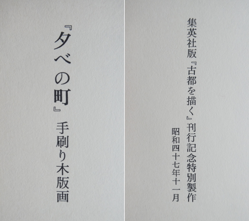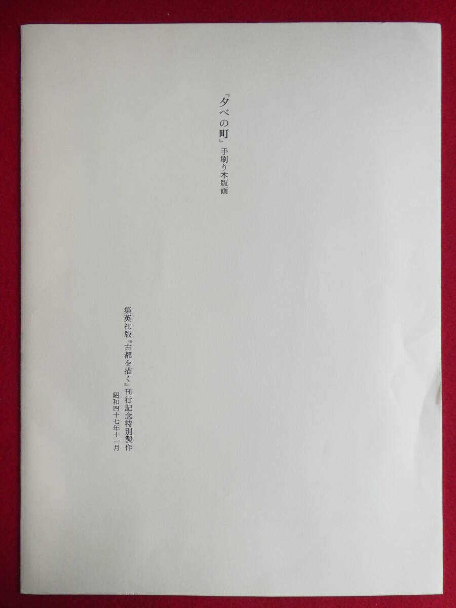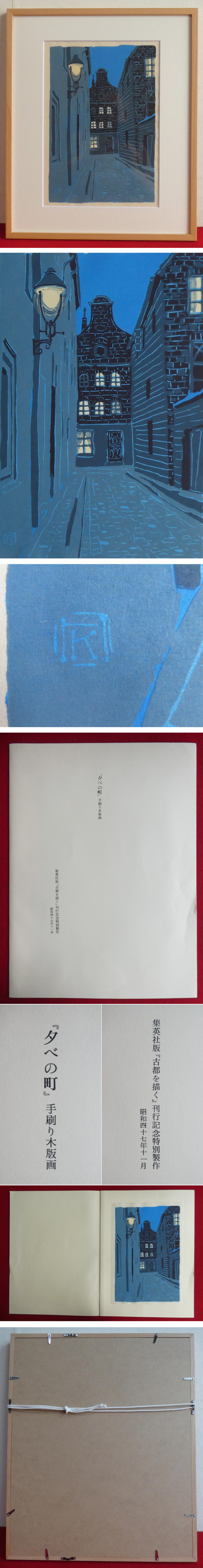 | 商品 | 【 真作 】 東山魁夷 【 夕べの町 】 限定1100部 版上サイン「KH」 手刷り木版画 ( アダチ版画研究所 ) レゾネ:日経新聞社No.83 「 古都を描く 」 -ドイツ・オーストラリア旅して- 添付 集英社版刊行記念特別製作 昭和47年11月 版画サイズ:約300mm×205mm 裏面1辺を糊で台紙に貼付 額装サイズ:約440mm×365mm×25mm |