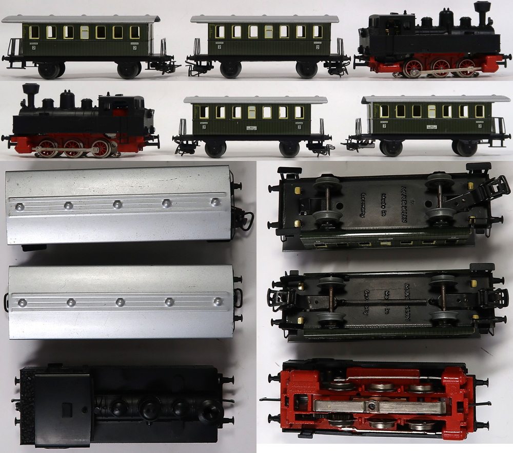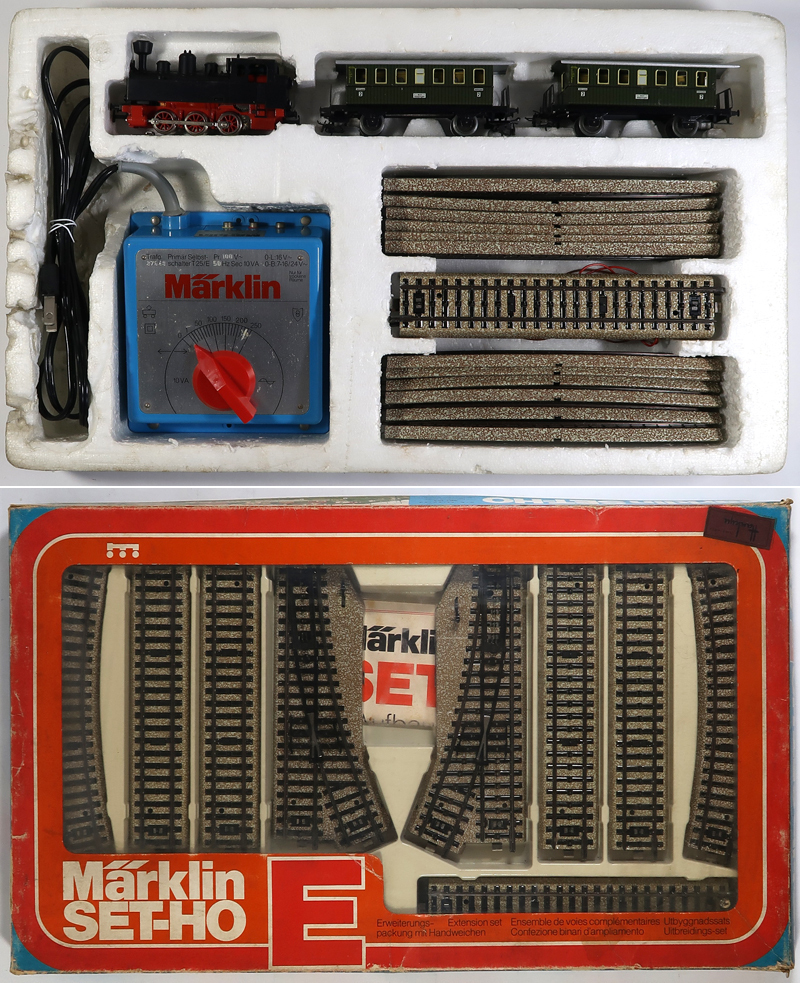 出品は最初の画像の機関車セットと線路セットのみです。箱や凹み、破れや汚れがあります。鉄道模型セットの箱の上蓋はないです。あまり使用はされていないような感じですが、多少なりとも汚れや擦れがあります。鉄道車両の細かい部分などは曲がっていたりしている箇所もあります。所々に若干のサビがある箇所もあります。テストしましたが問題なく動作しました。線路からコントローラーにつなぐ配線の先端に接続棒のようなものが付いているのですが、片方がピアノ線のみになっています。束ねて厚みをつけてコントローラーにさしましたが問題なく動作しました。後は画像をご覧になってご判断ください。分かることは以上です。出品前にきちんと基本的な事は問題ないかチェックした上で出品していますが、発送後になにか問題がありましてもサポートは出来ませんし、返品やクレームは一切受け入れられませんのでそれを納得した上で御入札下さい。