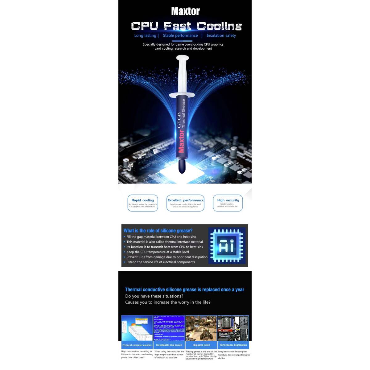 超高性能熱伝導率 12.8W/m-k MAXTOR CTG8 4g CPUシリコングリス サーマルグリス 絶縁 冷却 1本 送料別途