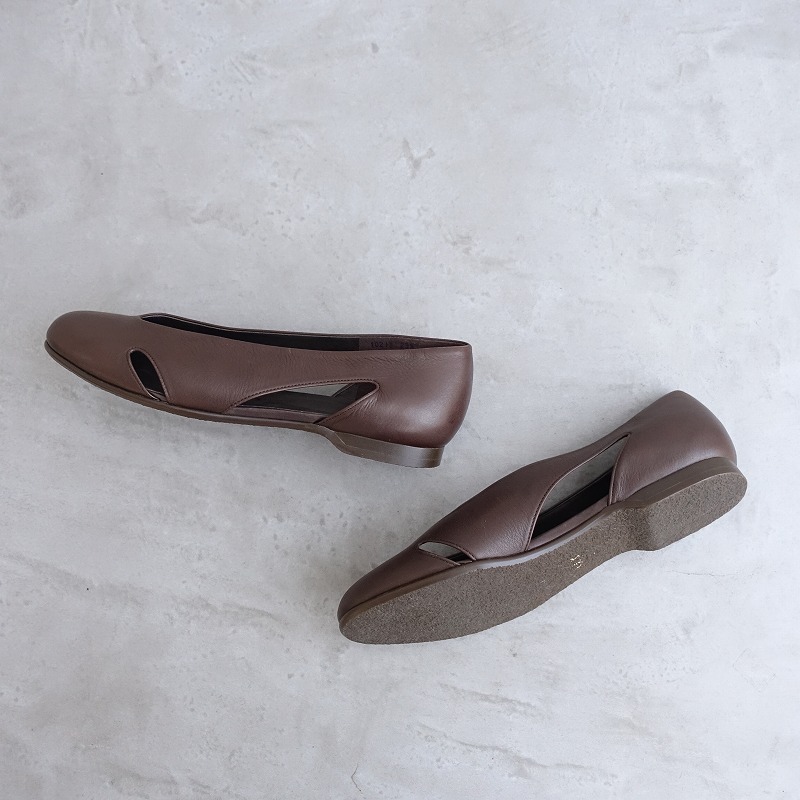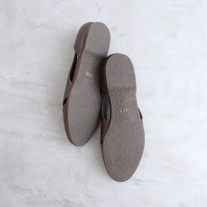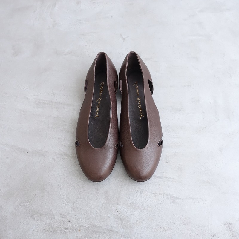 | JURGEN LEHLのレザーフラットパンプスです。カラーはブラウンで、素材はレザーです。 |