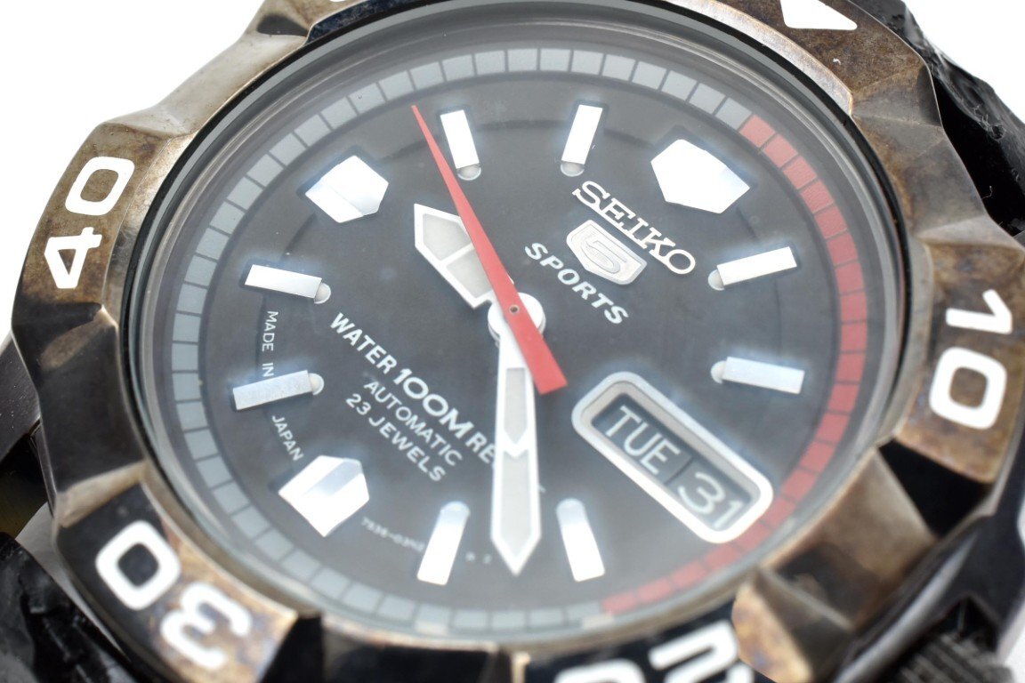 稼働品 SEIKO 5 SPORTS AUTOMATIC セイコー スポーツ 自動巻き 腕時計 メンズ 3針 デイデイト ブラック 7S36-02L0
