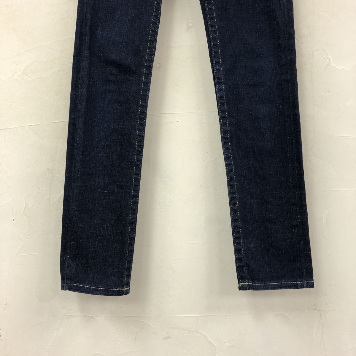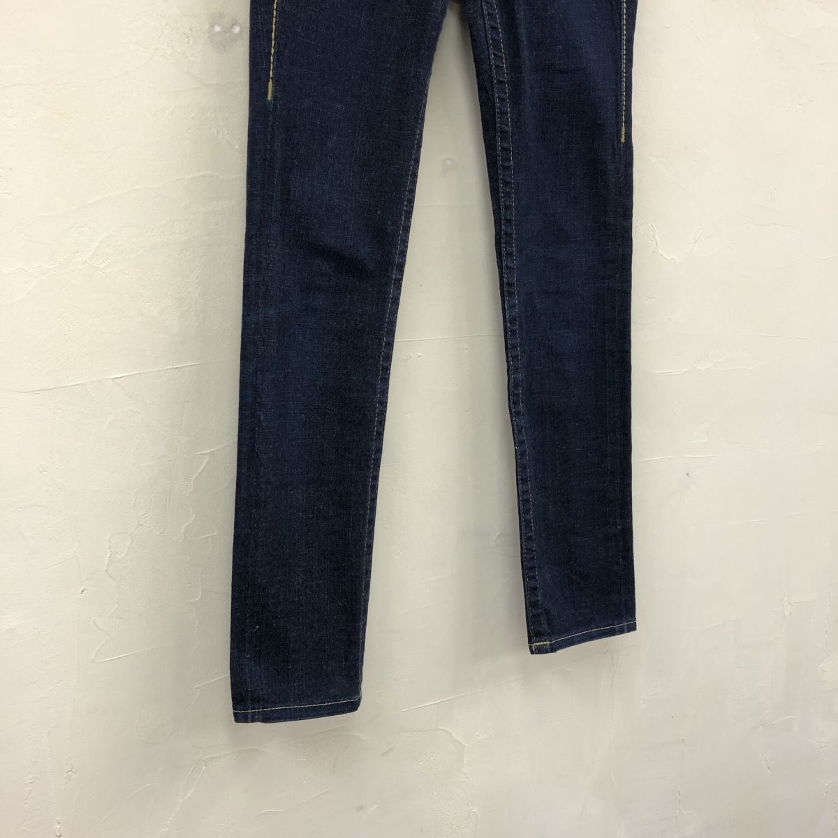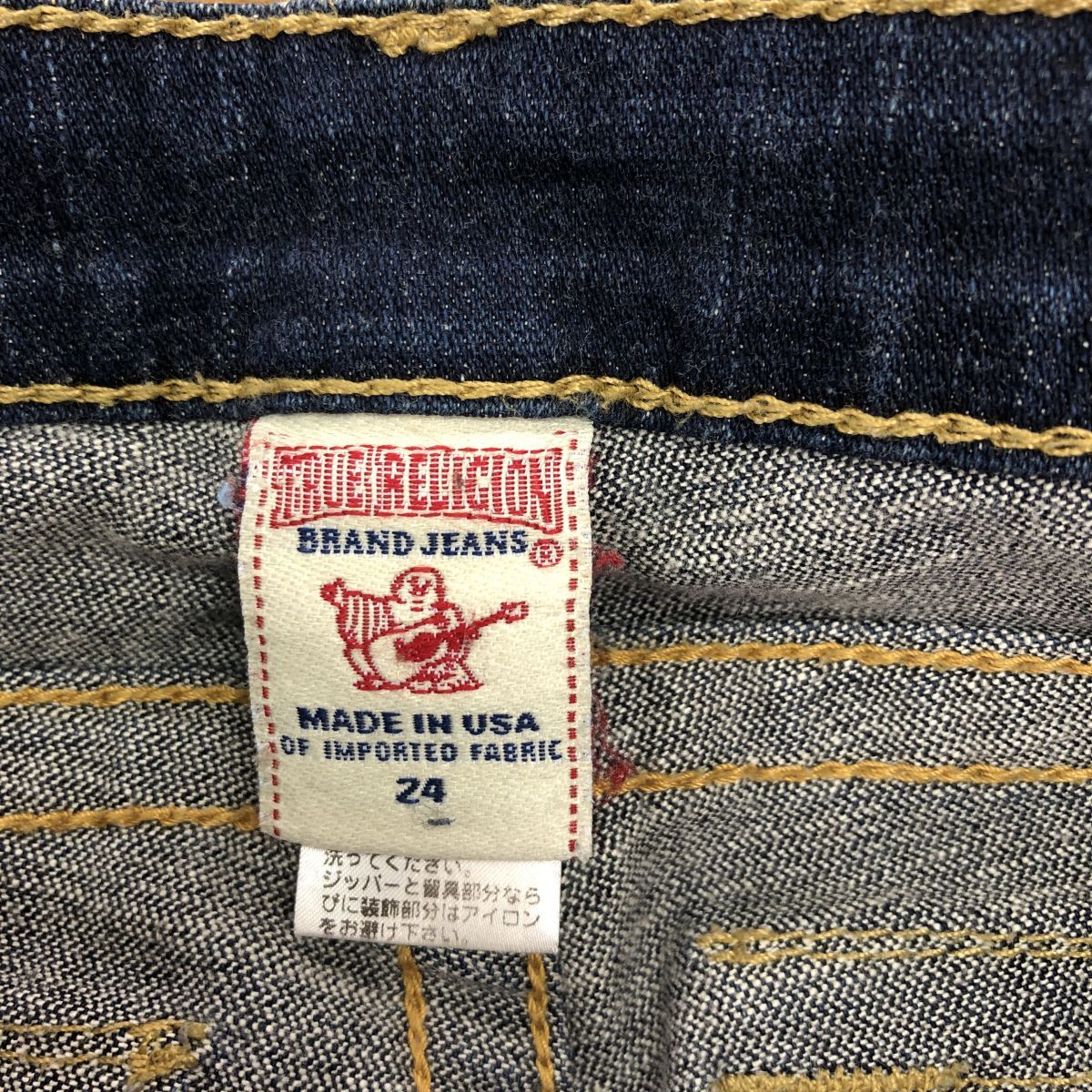 2H2108-G◆美品◆ TRUE RELIGION トゥルーレリジョン USA製 スキニーデニム ビジュー ストレッチ フラップ スパンコール ◆ size24 紺 綿