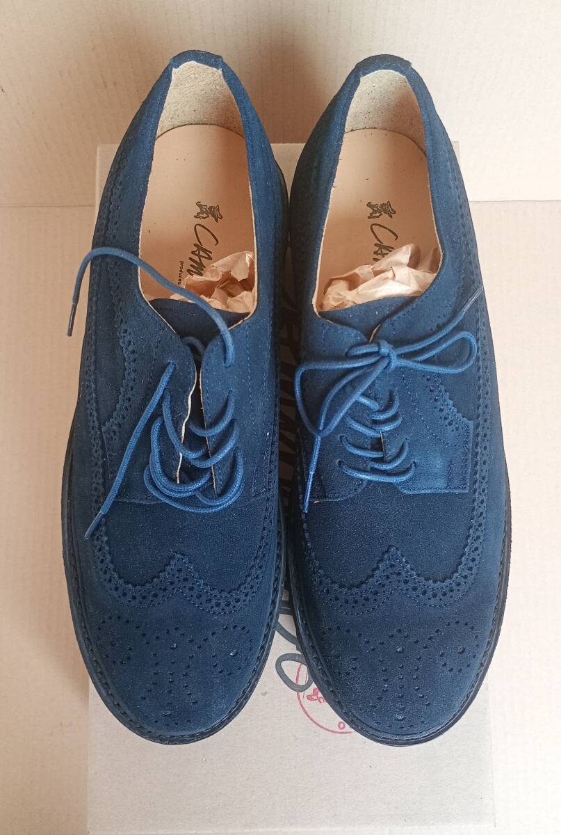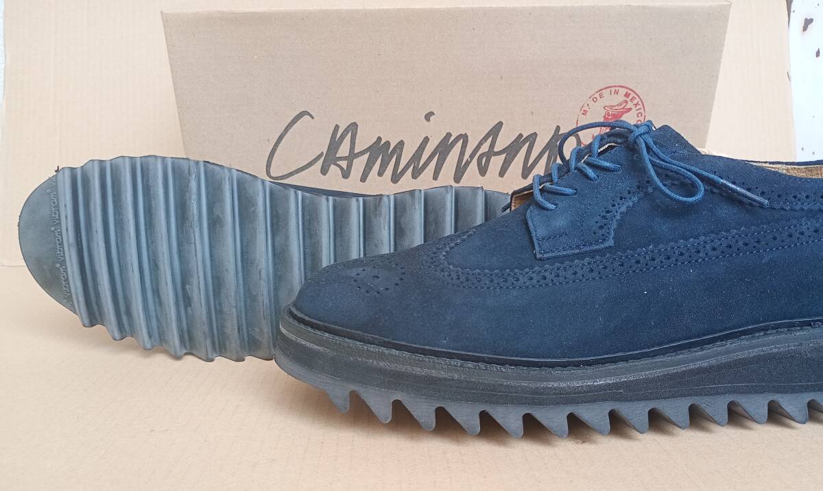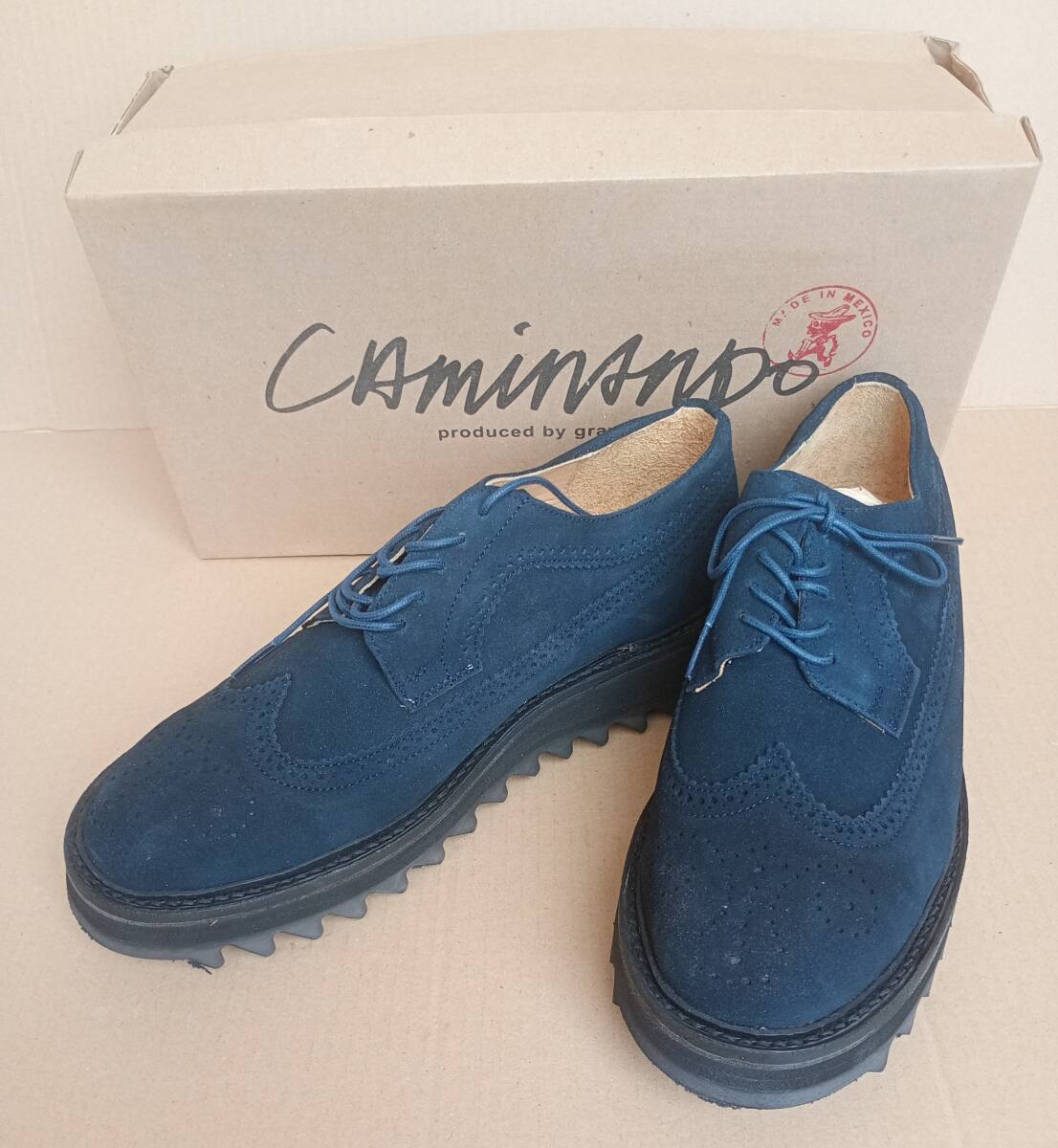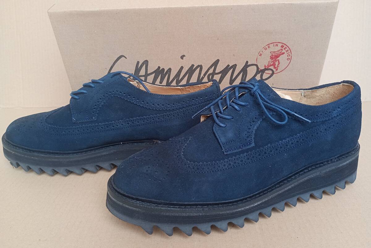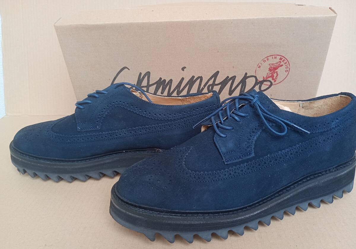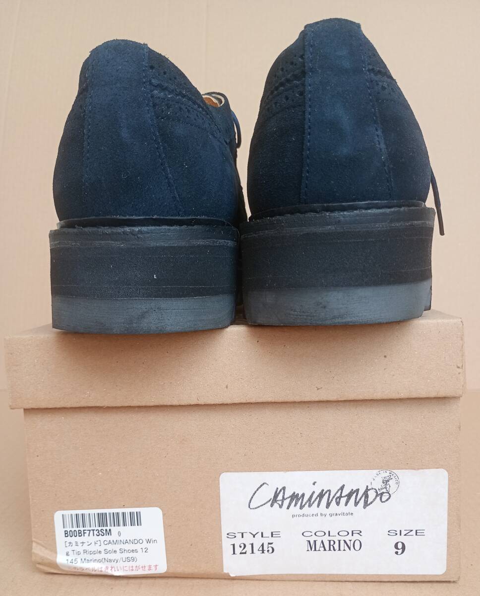 未使用/カミナンド Caminando スエードレザーシューズ ウイングチップ プレーントゥ ネイビー サイズ9 シャークソール